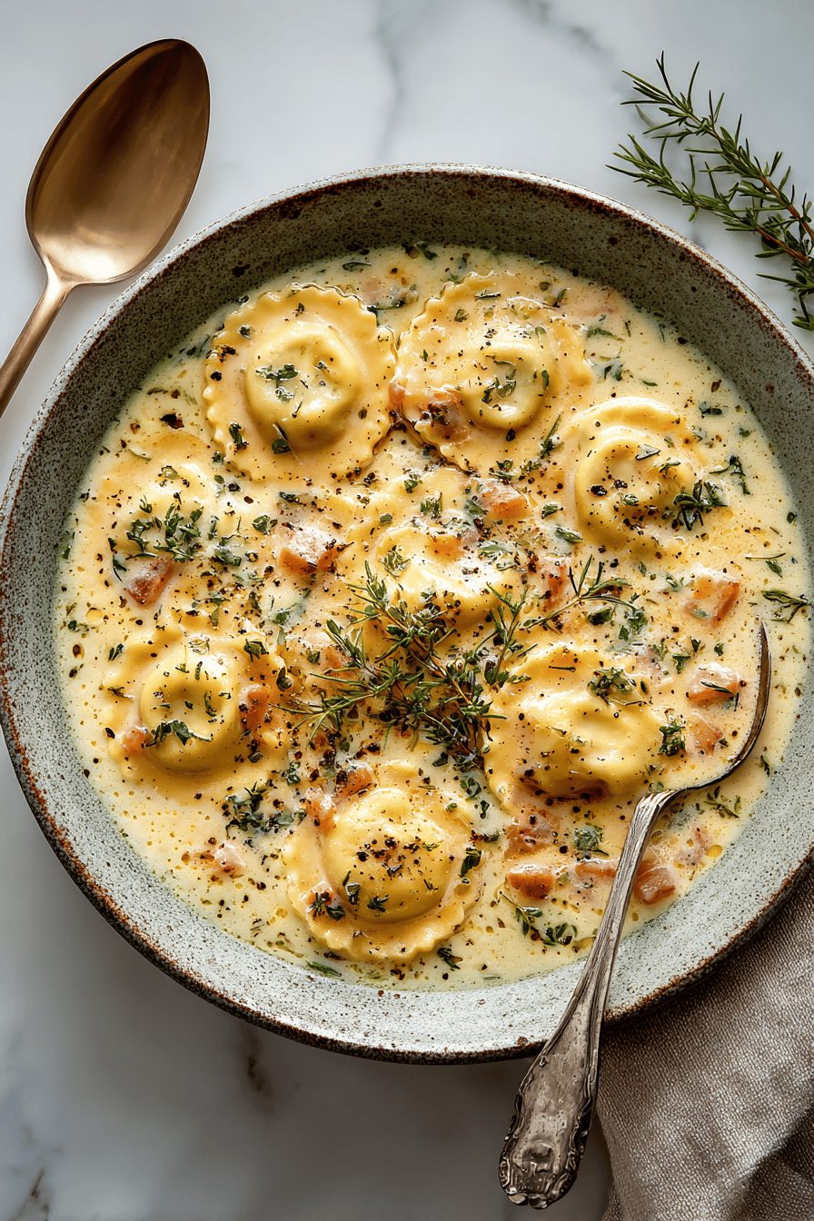 This recipe is an original creation inspired by classic Creamy Ravioli Soup Recipe flavors. All ingredient ratios and instructions are independently developed.