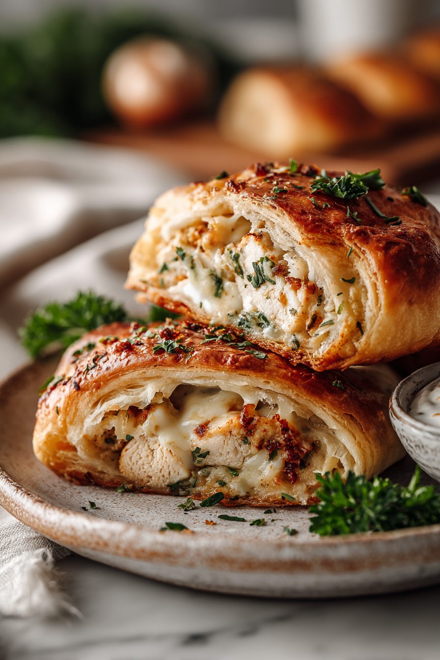I made these on a weeknight when the fridge was borderline sad and the kids declared cereal unacceptable. They’re gooey, flaky pockets of rotisserie chicken, melty cheese, and herbs wrapped in buttery crescent dough — stupidly easy and somehow fancier than a sandwich. If you like handheld food that doubles as comfort and chaos-control, this is your new lazy-gourmet move.