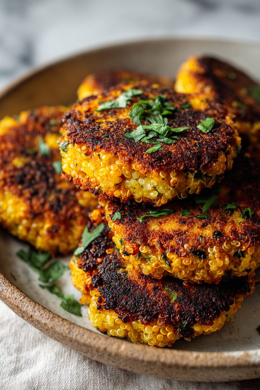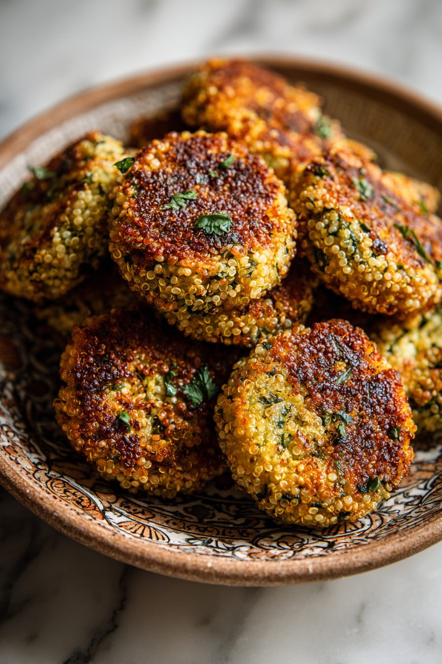 I’ll admit I used to panic about quinoa being gummy — then I stopped over-stirring and let it steam off the heat. The first few batches were either sad mush or hockey pucks; once I nailed the wet-to-dry ratio and pressed them gently before frying, they turned into golden little miracles. I once swapped panko for crushed cornflakes on a whim and the kids declared them “crunchier than a chip” — so yes, experiment. Also: don’t skip resting them briefly before flipping, or you’ll be scooping sad broken patties off the pan.