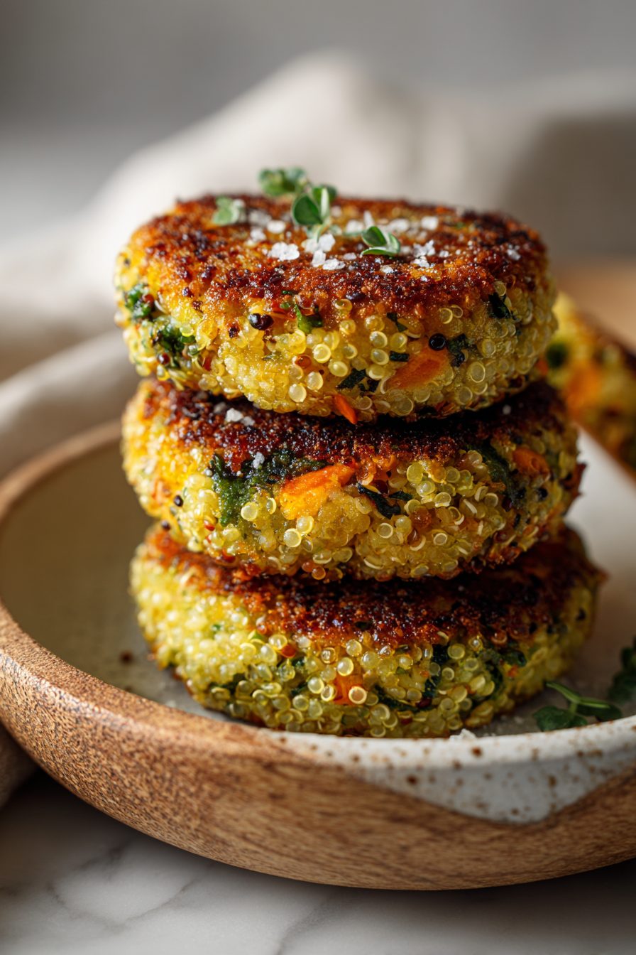 Golden, crisp quinoa patties packed with grated veggies and herbs. Simple to pan-fry and perfect for meal prep or weeknights.
