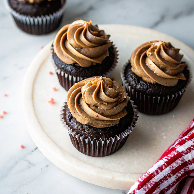 - Swirl or pipe the frosting onto cooled cupcakes. Finish with chopped peanuts, a pinch of flaky sea salt, and optional dark chocolate shavings.