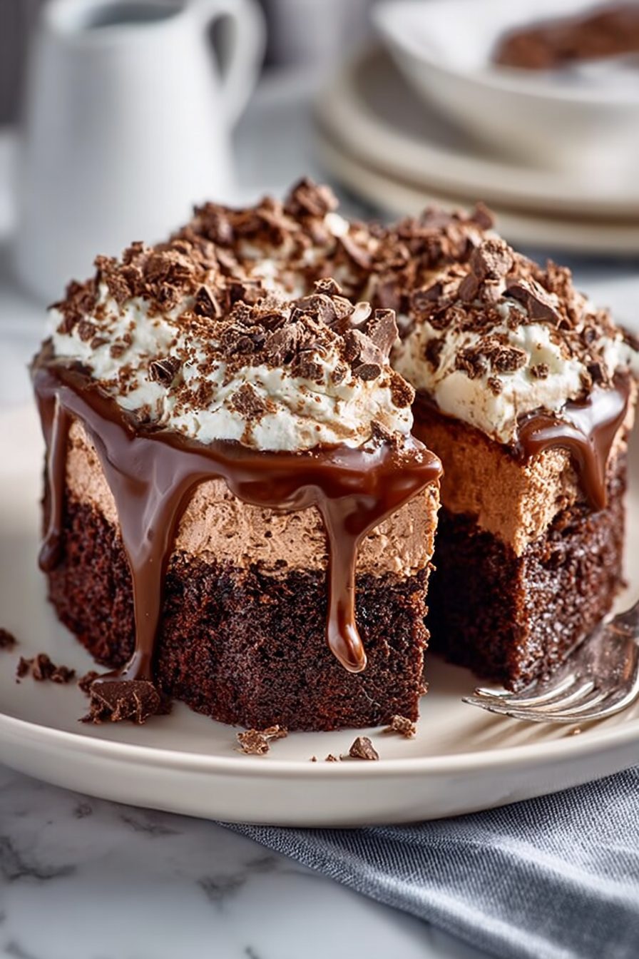 This cake is unapologetically indulgent—moist chocolate layer poked full of little wells, filled with a boozy or vanilla pudding or ganache, then capped with clouds of whipped cream and extra chocolate shavings. It’s the sort of dessert that shows up at every birthday, potluck, and sad Tuesday because somehow it fixes everything. It’s special because it’s easy to make look fancy, tolerates a million tiny swaps, and winks at you from the fridge the next morning when breakfast needs joy.