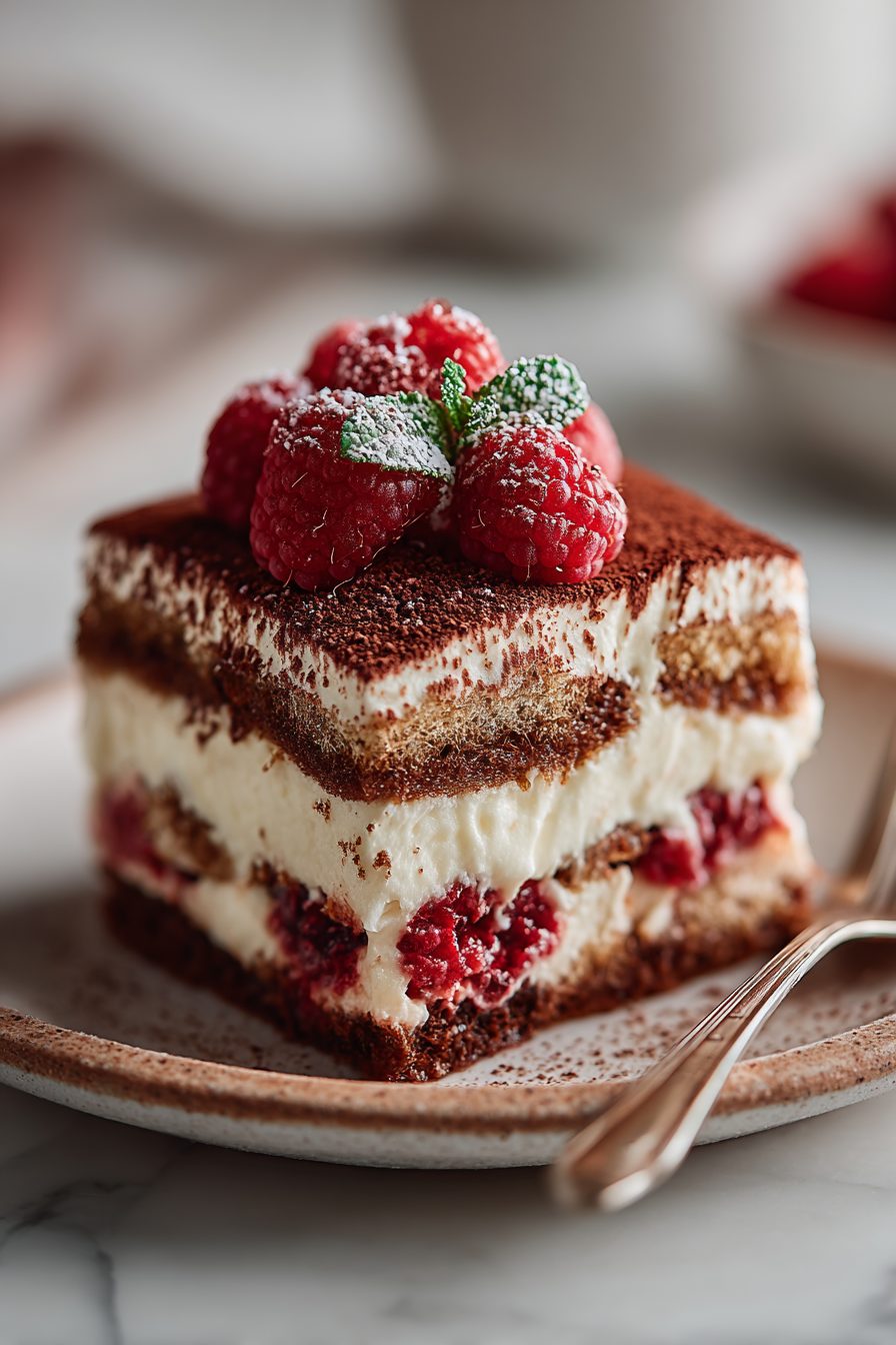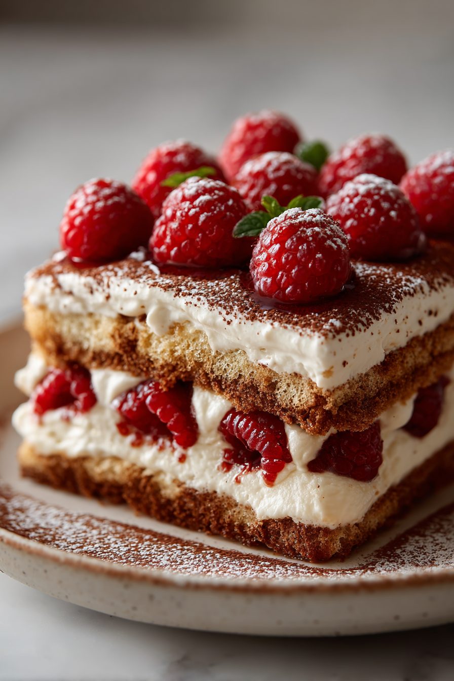 – Letting raspberries sit wet on the layers — watery fruit = soggy tiramisu. Drain or macerate briefly, then pat dry if needed.
