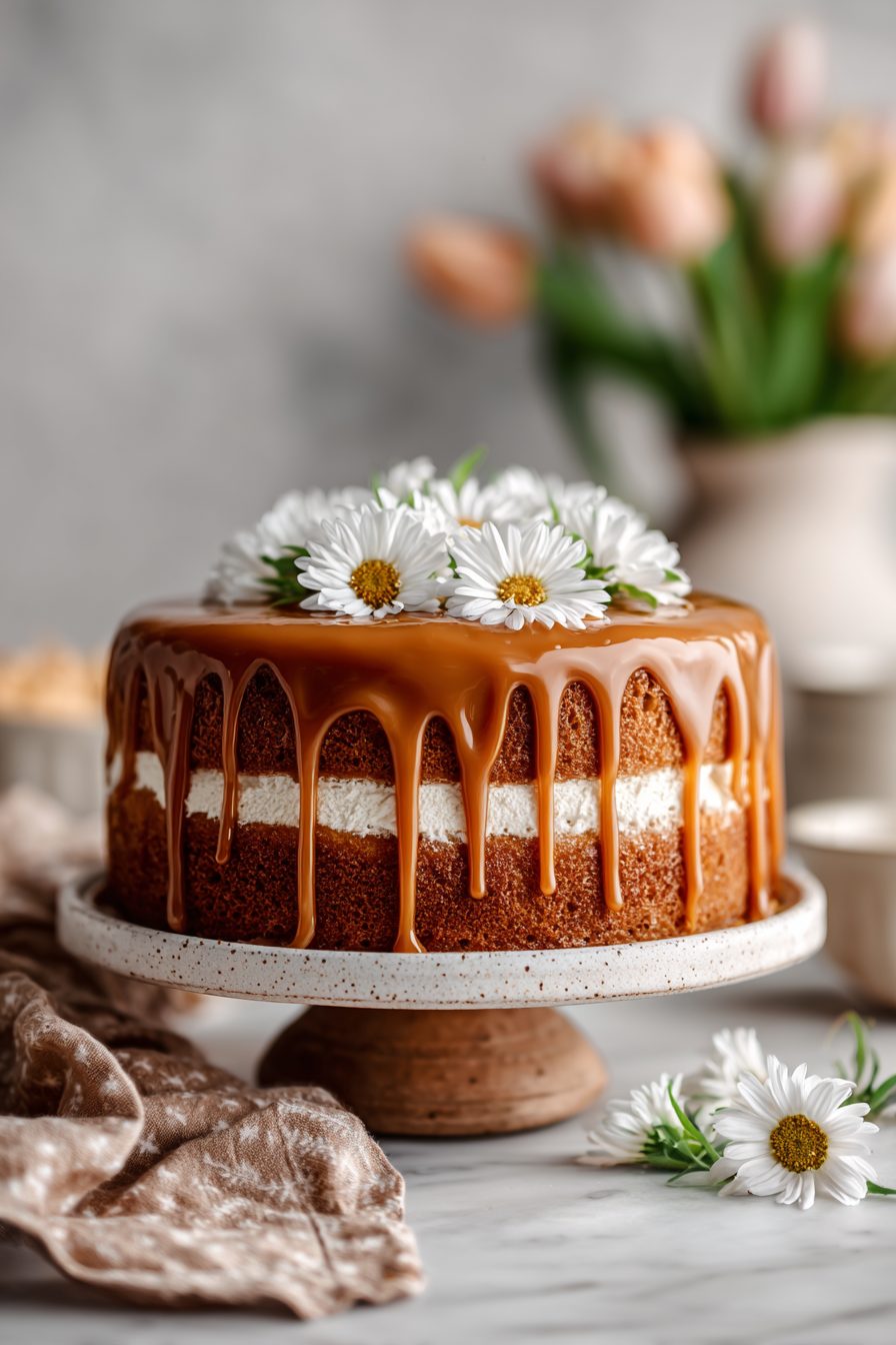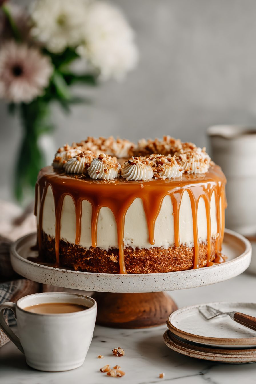 This cake is sticky, buttery, and unapologetically Southern — a layered yellow cake drenched in a slow-cooked, golden caramel sauce and finished with toasted pecans (because texture matters). It’s the kind of dessert that makes you lick the spatula and then fake-casually offer slices to guests while secretly hoping they won’t notice you cut the heel piece. Try it because it’s comforting, showy, and somehow both old-school and totally worth the fuss.