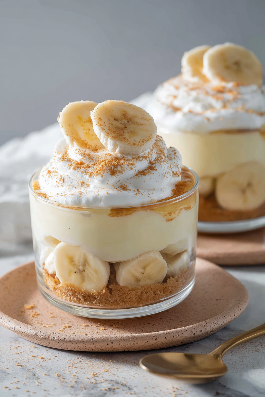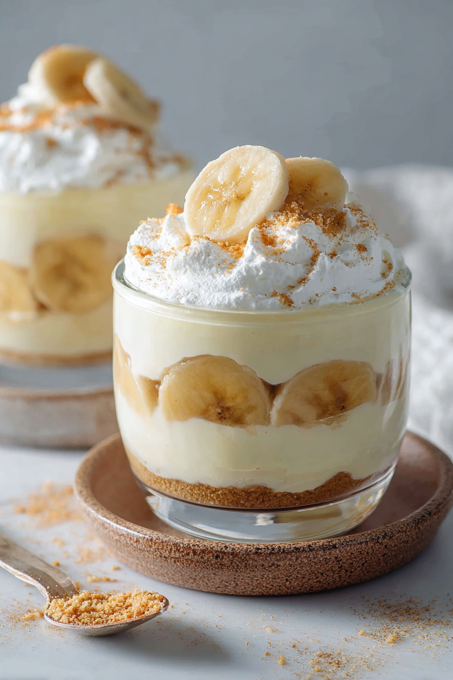 I’ve learned that if you rush the pudding, it gets a little moody—give it time to thicken or fold in a cloud of whipped cream and it turns dreamy. If the cookies go in too early and sit too long, they turn into soft little cake layers, which… honestly isn’t a bad thing. I’ve tried a splash of lemon on the bananas to keep them from browning—just a little, or you’ll taste it. One time I used shortbread cookies because that’s what we had and it tasted like a banana cream pie decided to wear a suit. Also, serving in tiny jars makes everyone feel weirdly special and keeps the fridge thieves from “evening out the edges.”