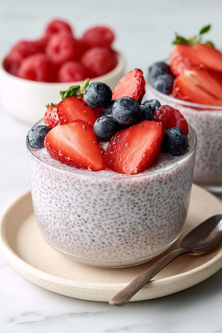 Sometimes the chia gets clumpy—don’t panic. I give it a good whisk right away, let it sit a few minutes, then whisk again. That second stir is the magic that breaks up the seed clumps and turns it silky. I’m also a big fan of vanilla bean paste; it gives the pudding those little specks and a deeper flavor than plain vanilla extract. If the berries are a little meh (hello, mid-winter), I’ll toss them with a tiny splash of lemon and a whisper of sweetener to wake them up. One time I forgot to stir the pudding after five minutes and it set like a seed brick—still fixable with a splash of milk and a vigorous shake. Learn from me. Or don’t. I’ll still cheer you on.