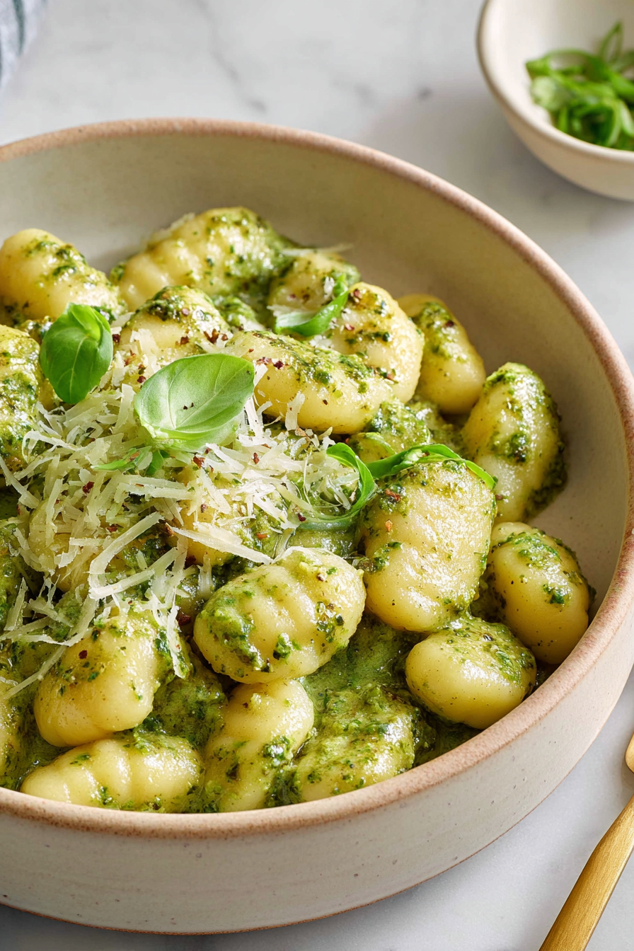 I swear by giving the gnocchi a quick pan-sear before saucing—little crispy edges make the whole dish feel cheffy. I learned the hard way that garlic goes in after the gnocchi starts to get color; otherwise it burns and turns bitter… which I absolutely ate once out of stubbornness. Lemon is non-negotiable for me—zest into the sauce, a squeeze at the end. If you toss in a handful of spinach, it wilts instantly and makes you feel like a health goddess. And yes, jarred pesto works; I just hit it with extra parm and a splash of pasta water to make it glossy and happy.