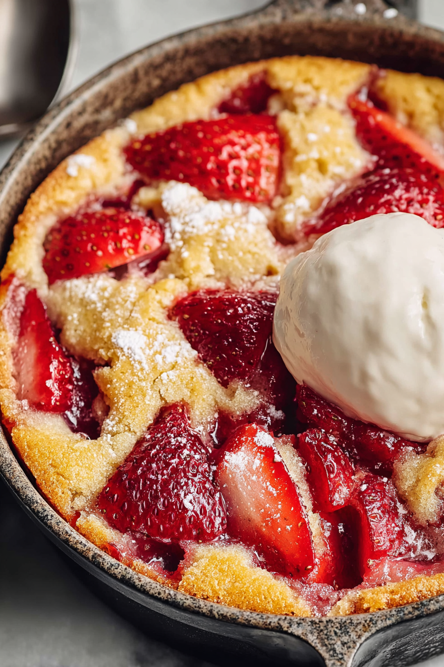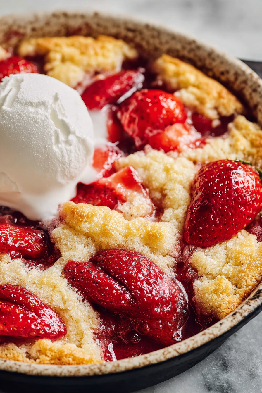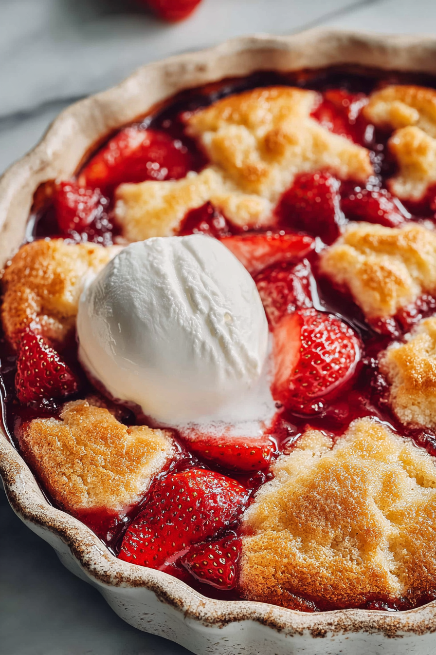 My little family eats this like it’s a competitive sport. My husband will stand by the oven door like a sad puppy until the steam escapes and the crust starts to brown. The kids refuse to wait for it to cool and we’ve learned to hide the scoop so we can at least get one decent photo. It’s become our weekend default — birthdays, movie nights, when the groceries are low but the strawberries are yelling from the fridge. I once tried to make this with frozen berries in January and it was respectable, but nothing beats late-June strawberries dripping with sunlight.