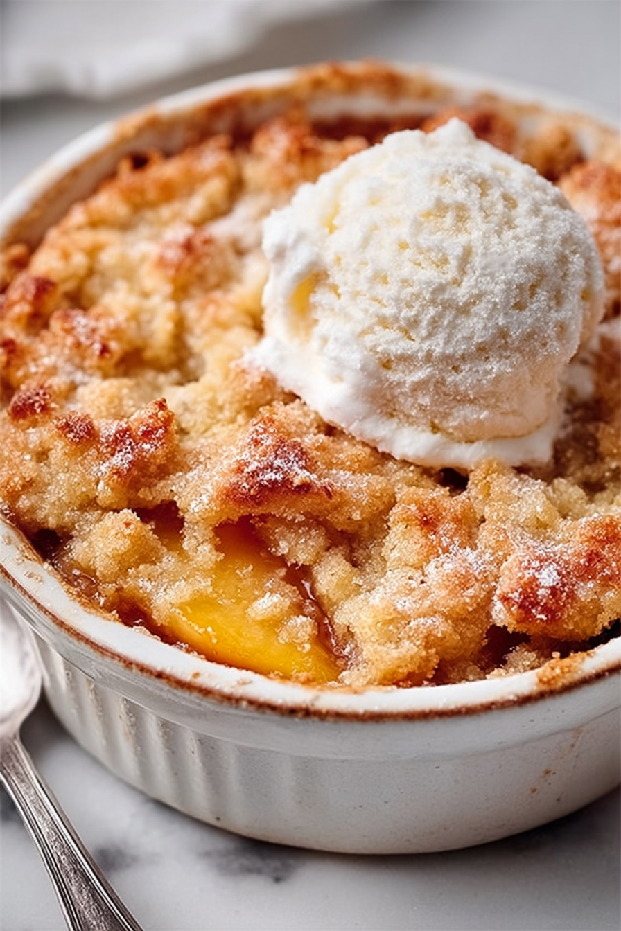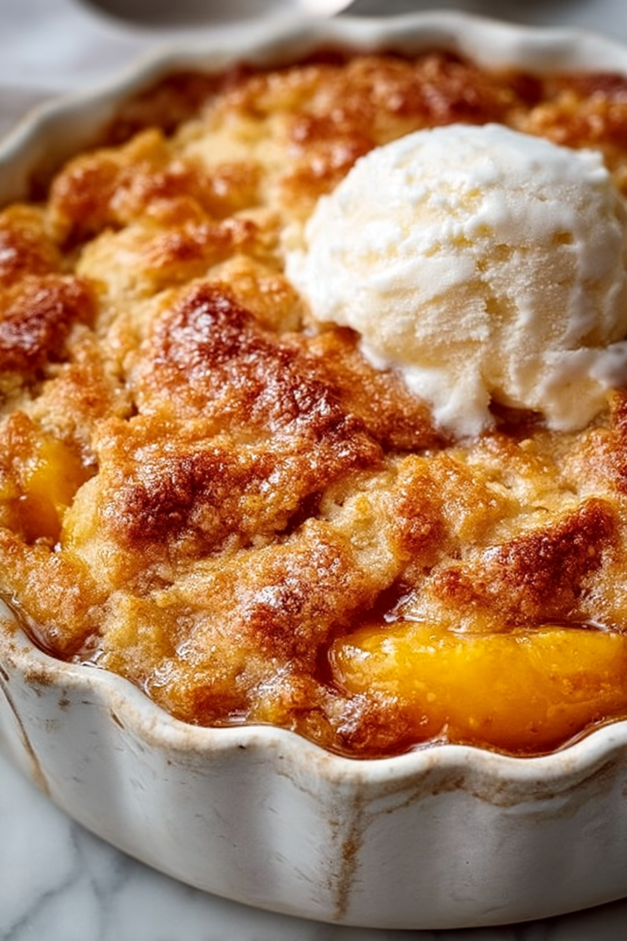 This is peaches bubbling under a golden, buttery lid that’s somewhere between a biscuit and a cake, with cinnamon cozying up to every bite. The edges caramelize, the center stays jammy, and the whole pan smells like you meant to plan dessert all week… even if you threw it together in 15 minutes after spotting those peaches on the counter giving you the side-eye.