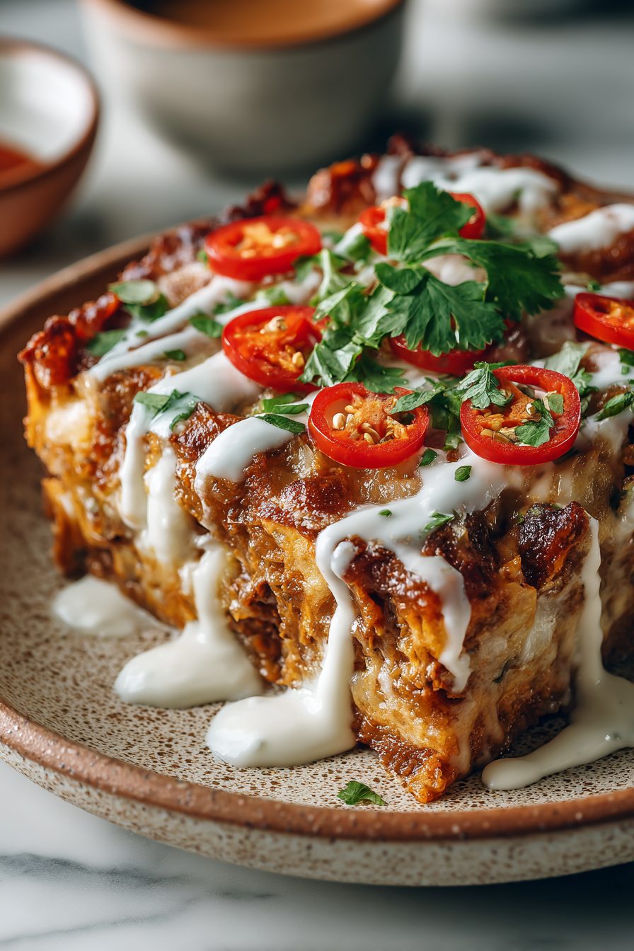 Warm, creamy, and comforting — this Delish-style Mexican casserole with white sauce was an instant weeknight winner for our family. The sauce is rich without being heavy, the layers hold up well after baking, and a squeeze of lime and extra cilantro at the end brightened everything perfectly.