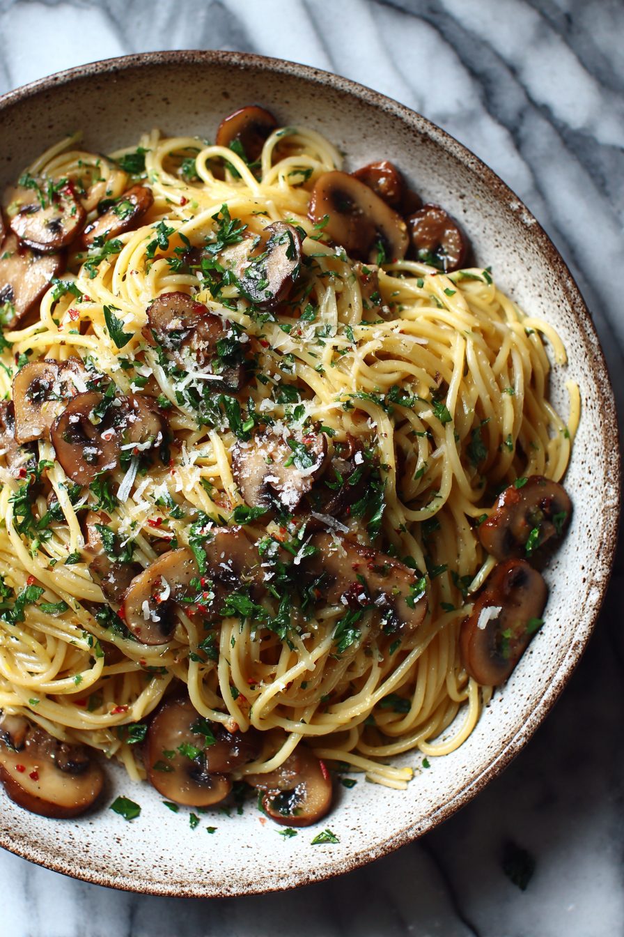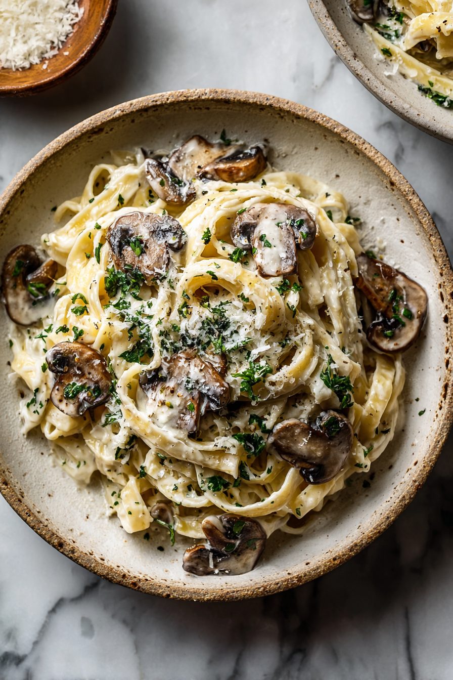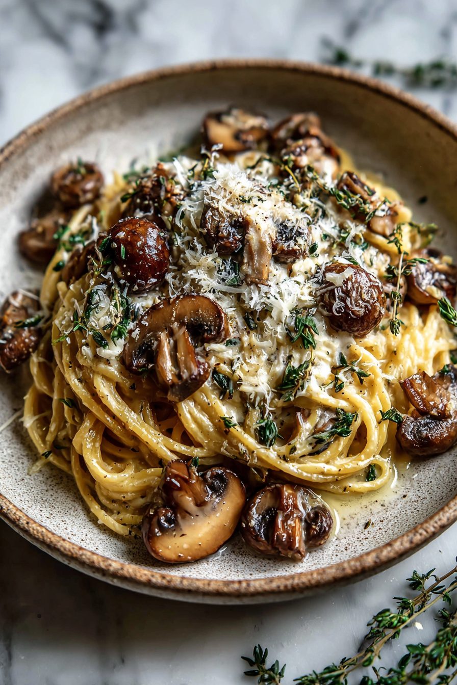 My husband treats this like a national treasure. He asked me to make it for his birthday one year and then announced it was officially “our Thursday dinner,” which stuck. My kiddo once dumped an entire bowl of grated cheese on top mid-bite and declared it “officially perfect,” so now extra cheese is a household requirement. We fight over the crispy mushroom edges and I’m somehow always the one left scrapping the pan for the last drippy noodle.