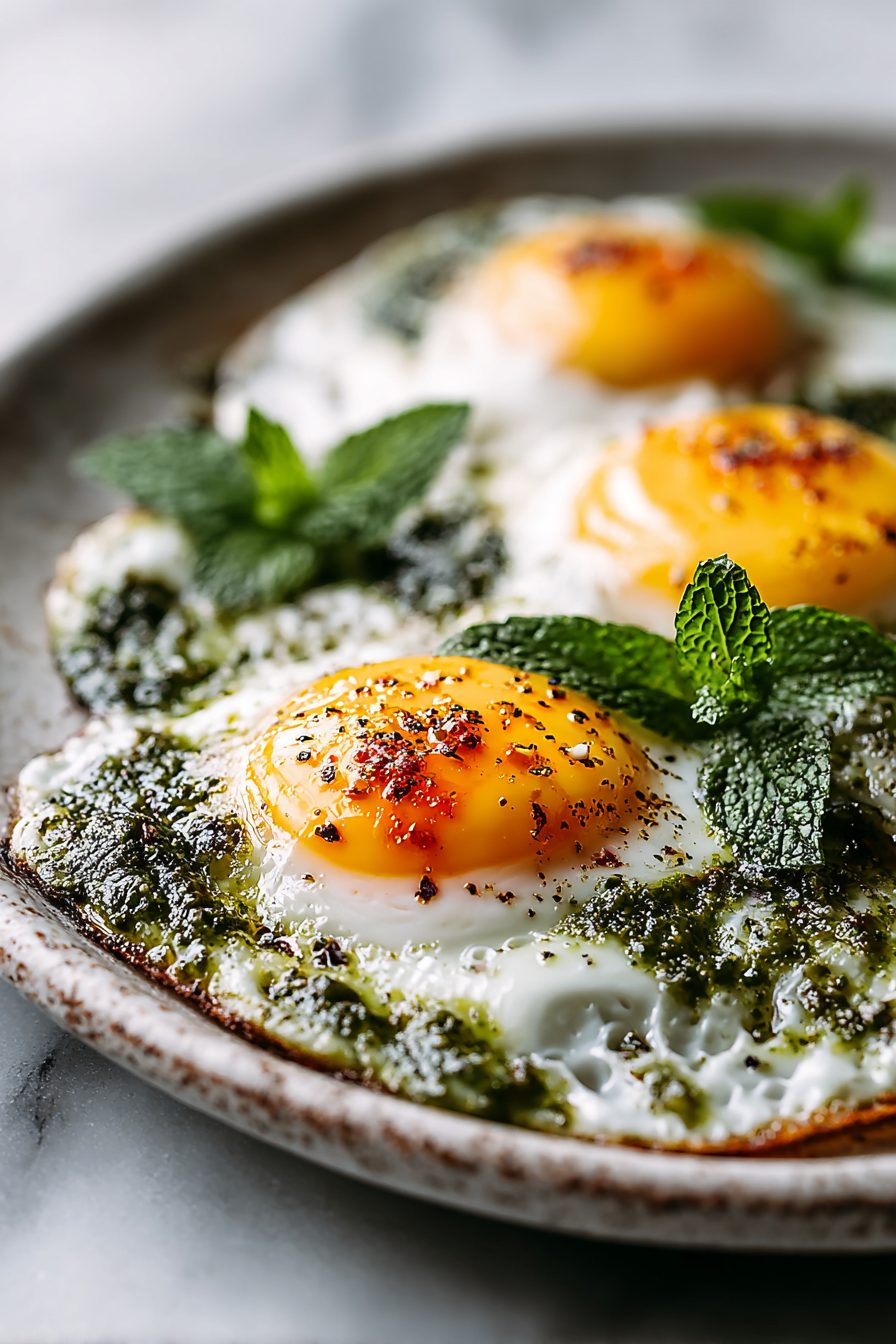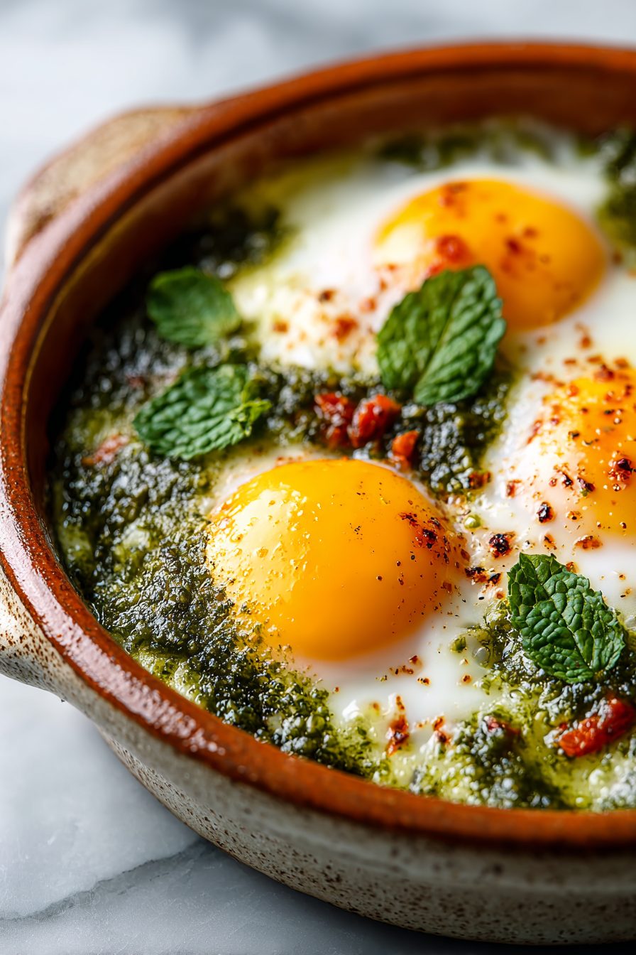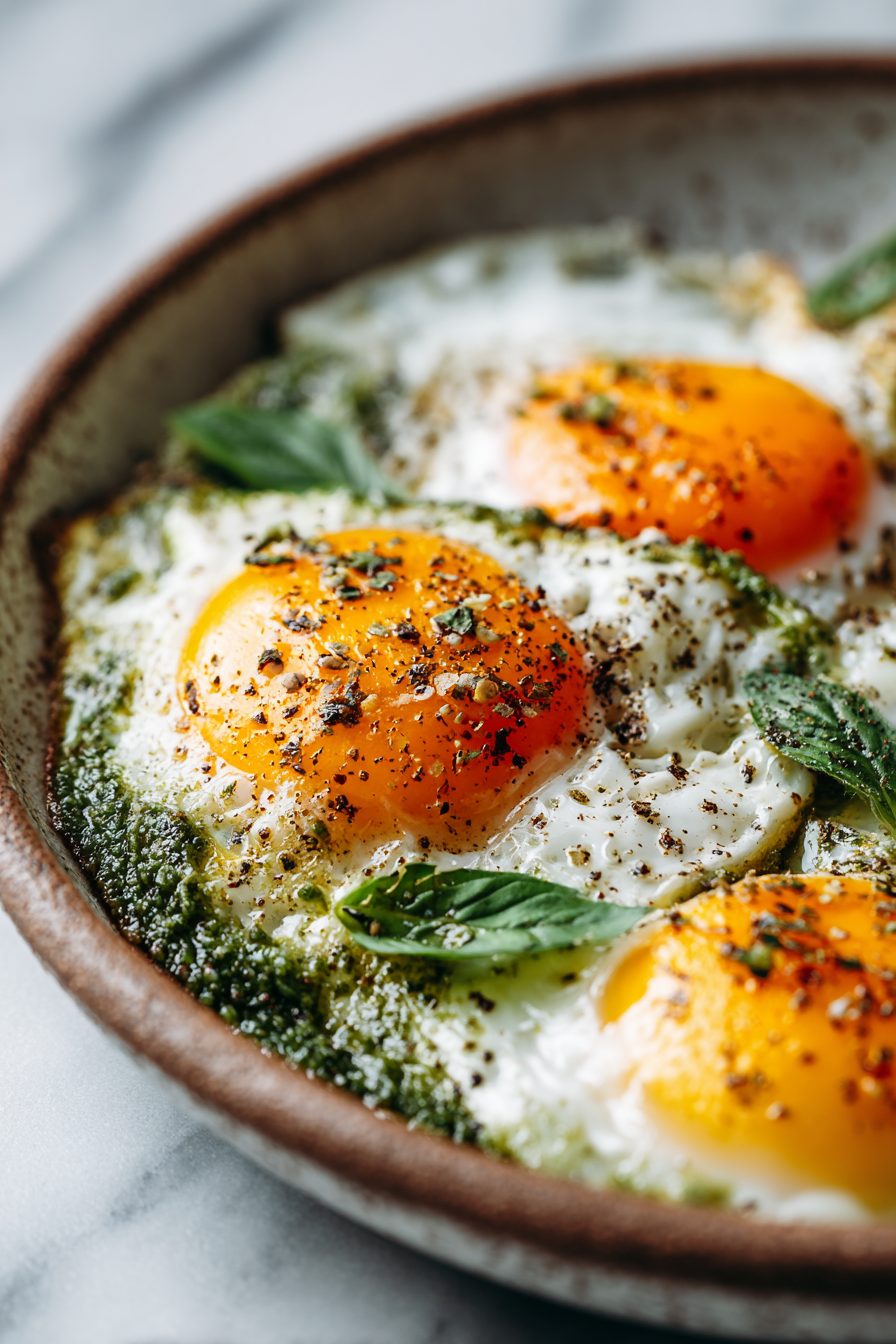 My husband calls these “weekend pesto eggs” like they’re a thing we invented — he takes one bite and announces loudly that I’m a culinary genius, then eats them in three seconds flat. The kids steal spoonfuls of pesto straight from the jar and I hide the last piece of crusty bread like it’s treasure. Once, I forgot to buy basil and used arugula pesto — total experiment — and somehow everyone declared it better. Now it’s a staple when the fridge looks sad but we still want dinner that doesn’t suck.