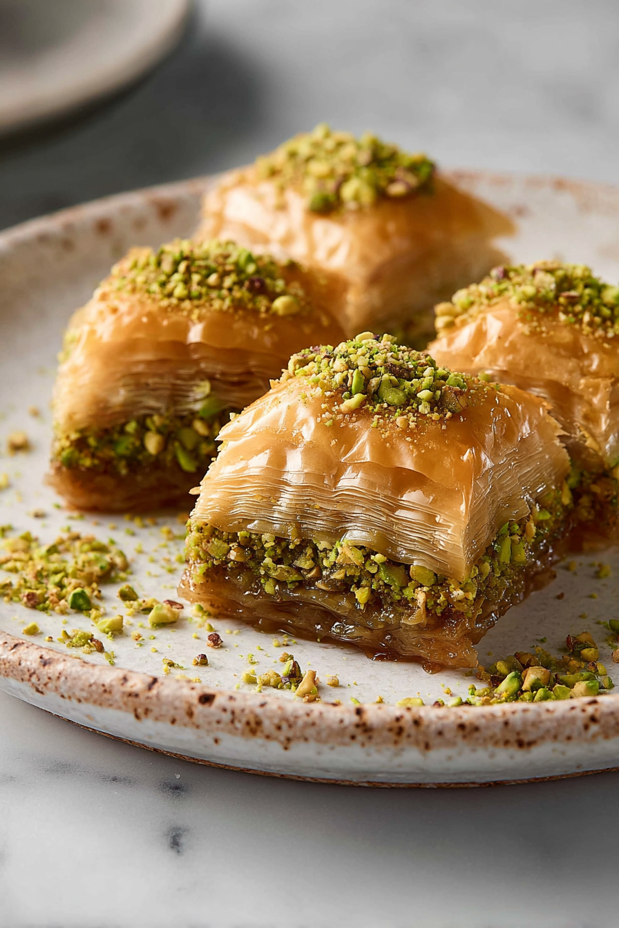 – Chocolate moment: drizzle cooled baklava with melted dark chocolate and sprinkle crushed pistachios on top.