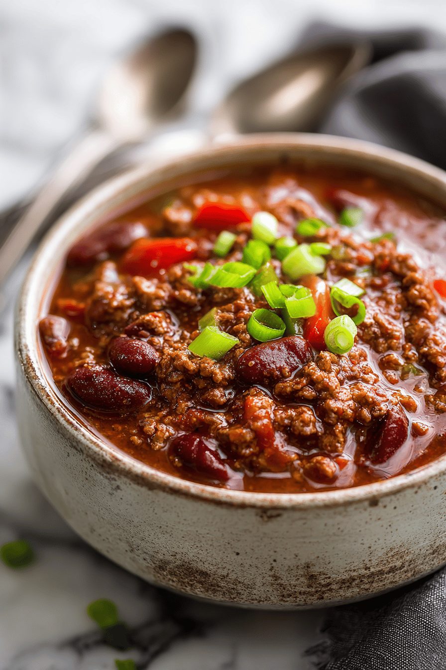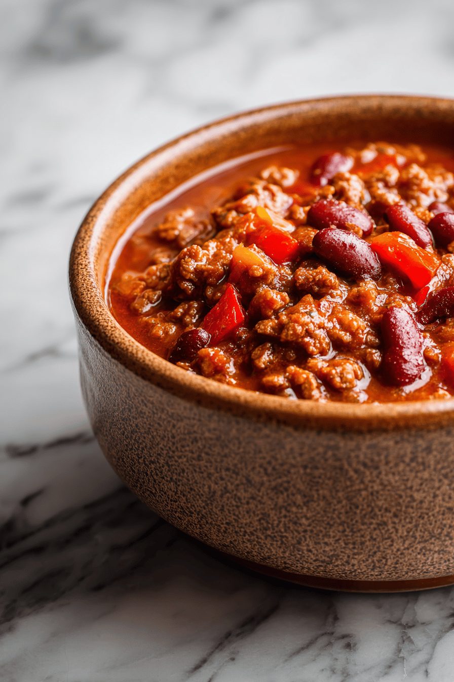 Chili keeps well in an airtight container in the fridge — it actually tastes better the next day once flavors settle. Eat it cold on a sandwich for a weirdly great lunch, or heat it for breakfast with an egg on top (no shame here). Freeze portions in freezer-safe containers for up to a few months; thaw in the fridge before reheating.