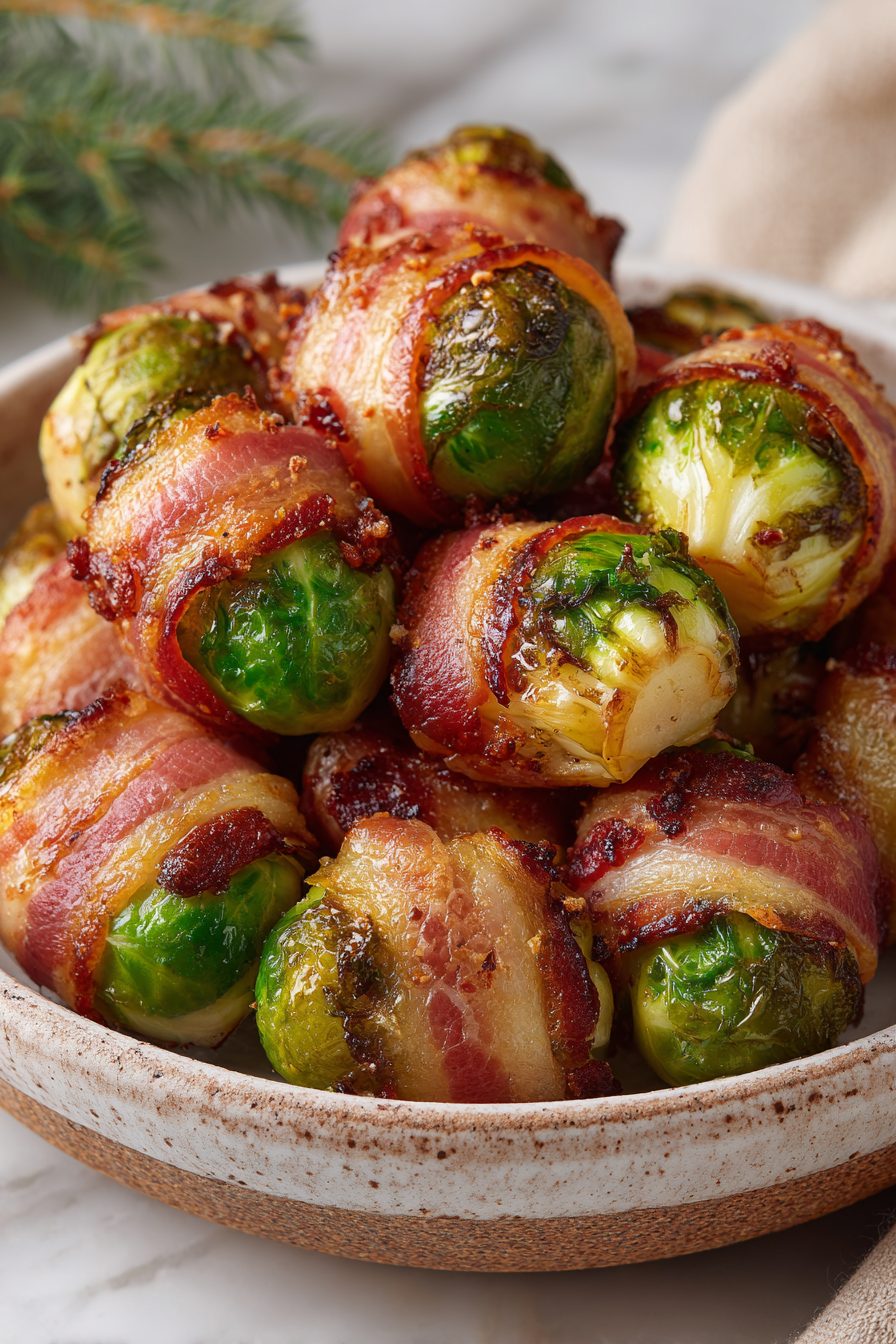 I love recipes that let me be messy and still get applause. Wrapping bacon around tiny sprouts is one of those joyful, slightly chaotic things — expect a few slips, some bacon that stretches like taffy, and at least one sprout that insists on popping its wrapper off mid-air fryer. I once tried to speed things up by using really thick bacon and ended up with undercooked centers and a smoky alarm. Lesson learned: thinner bacon = happier life. Also, if you like a sticky finish, toss them in a honey-balsamic glaze at the end; it makes them sticky in the best, slightly naughty way.