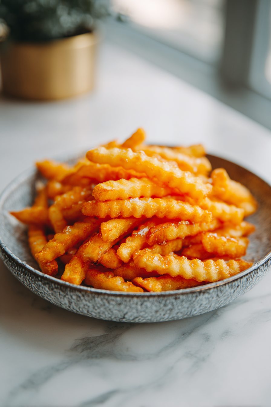 – Curly fries for maximum crisp ridges; keep the spice light since they brown faster.