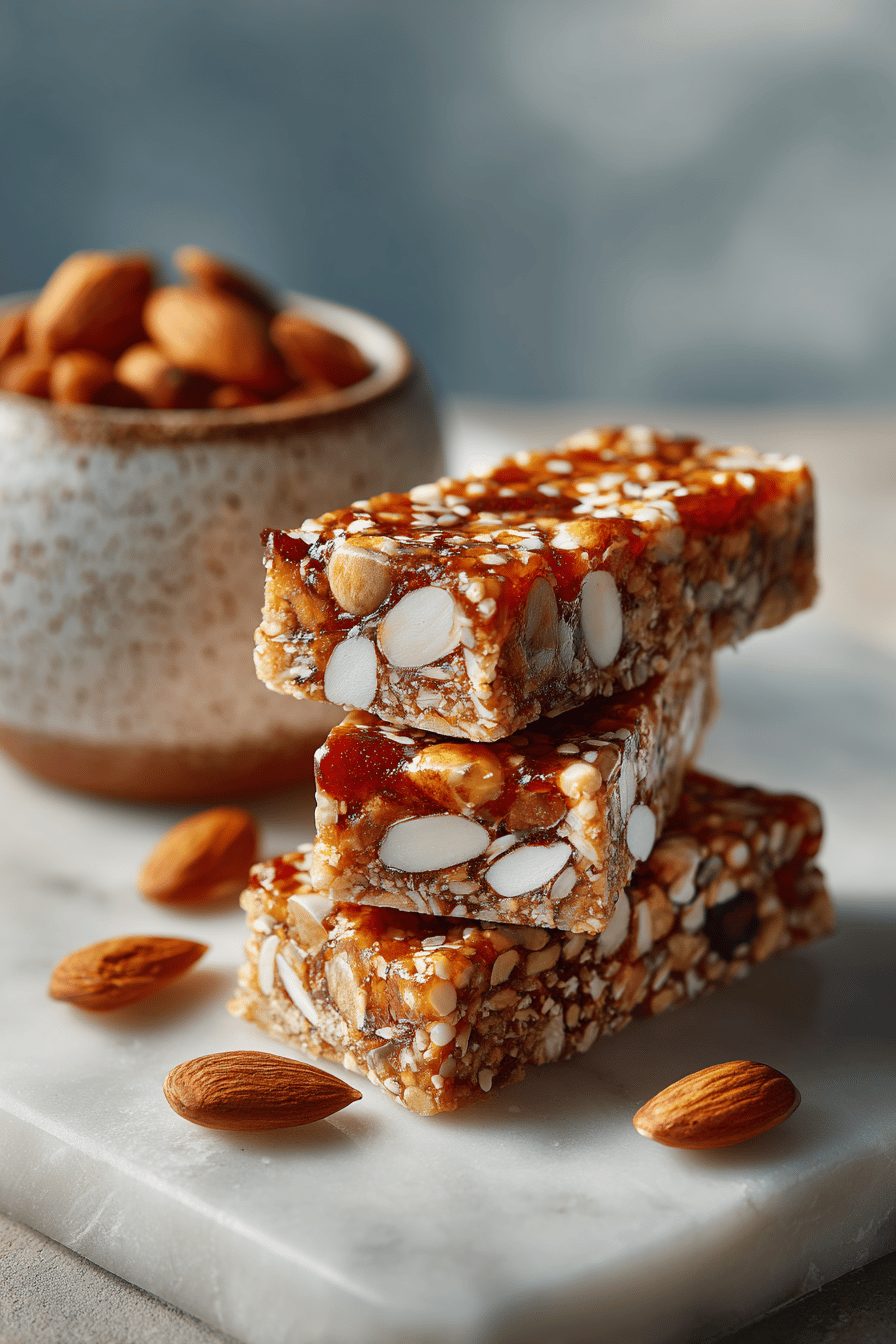 Chewy, nutty snack bars packed with oats, almonds, and honey. No-bake, lightly toasted for extra flavor.