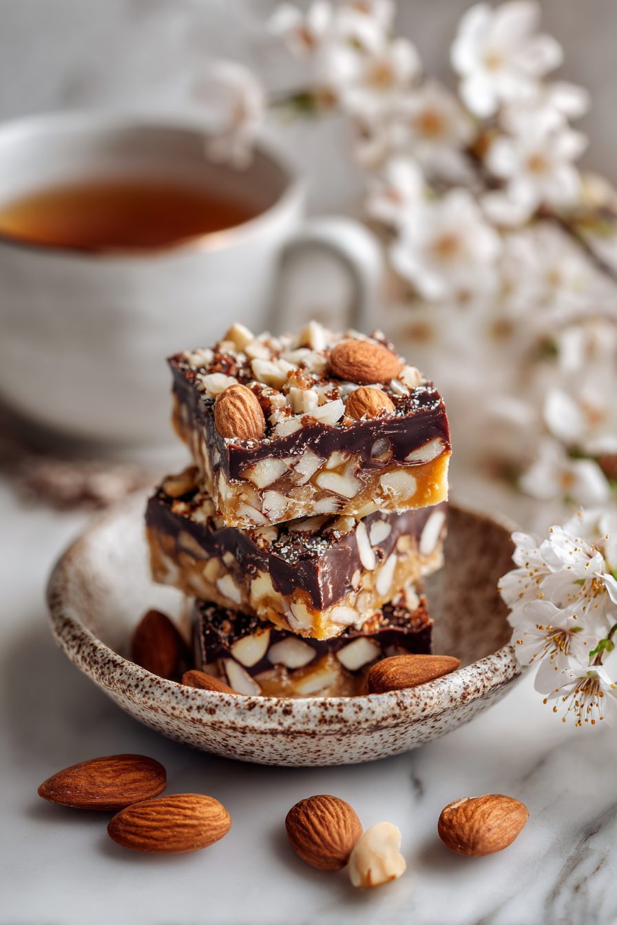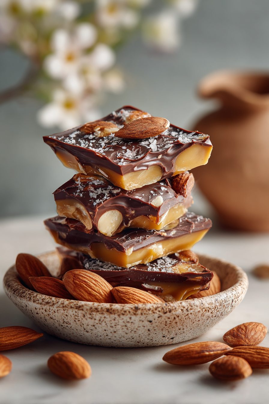 – Almonds sinking or floating unevenly: press them in while the toffee is still warm and tacky for best adherence.