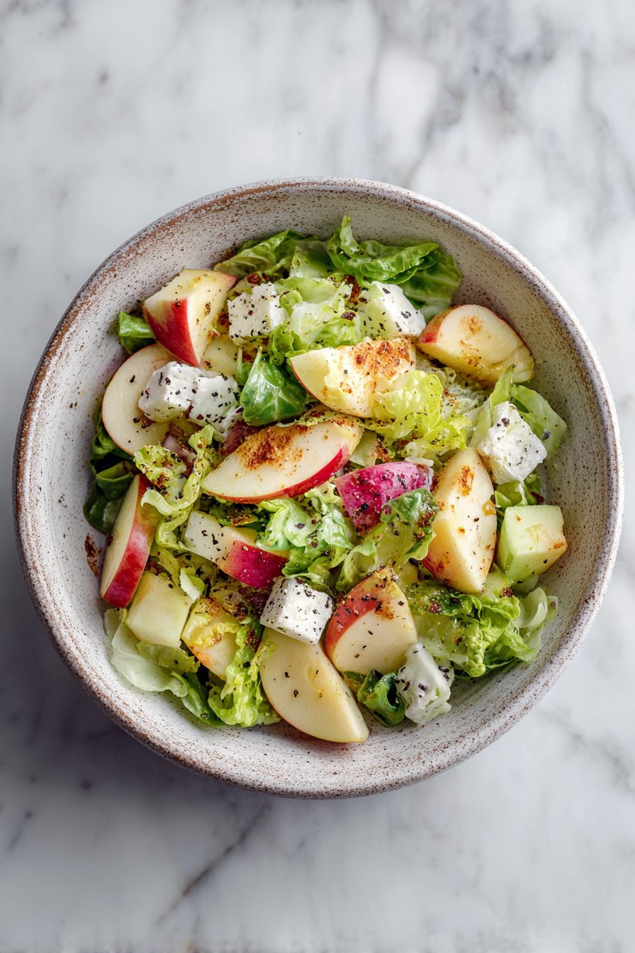 Feta is my usual, but sharp cheddar is a sleeper hit, especially with a little Dijon in the dressing. If you’re out of greens, skip them and keep it chunky—apple-nut-cheese energy is strong enough to stand alone.