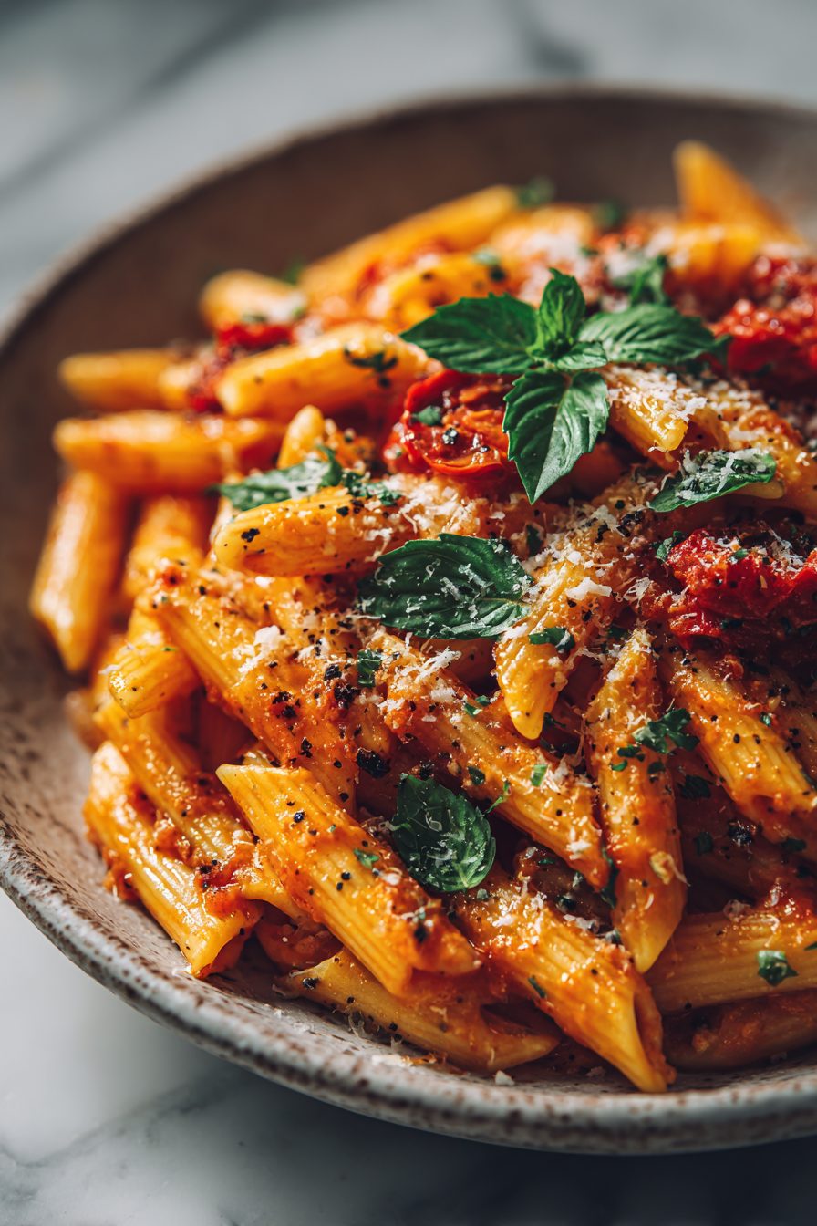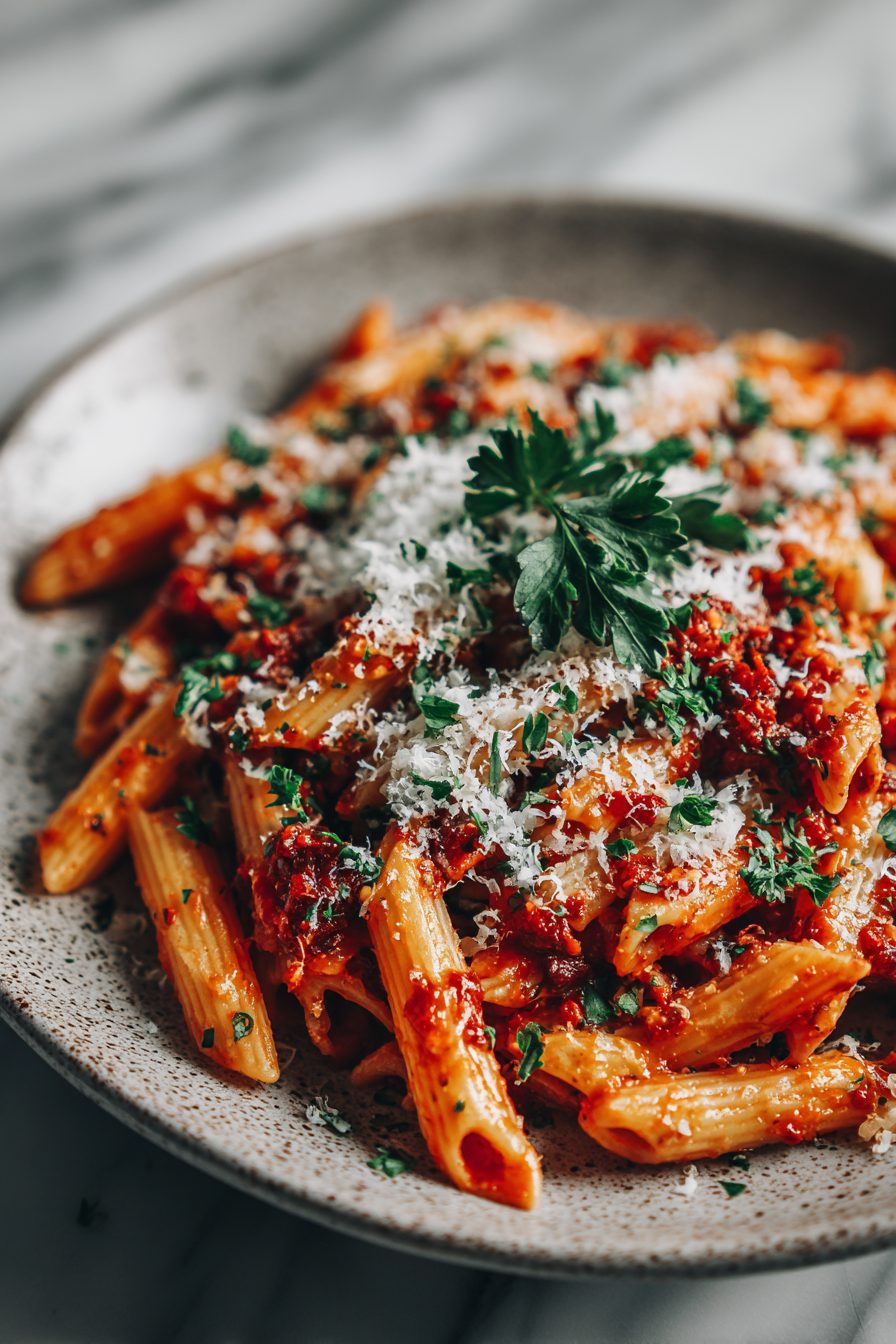 This simple, fiery Arrabbiata is the kind of pasta that shows up when the fridge is half-empty and everyone still expects dinner to be delicious. Think garlic-forward tomato sauce, a good kick from red pepper flakes, and a bowl of pasta that somehow tastes like you cooked for hours even when you didn’t. It’s pantry-friendly, quick, and messy-in-a-good-way — the perfect weeknight flex.
