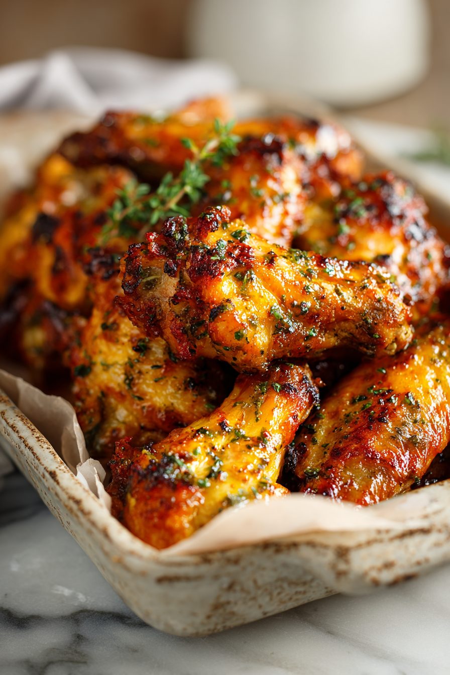 – Bake on a single sheet pan with a roasting rack so the wings get air on the bottom and crisp up evenly.