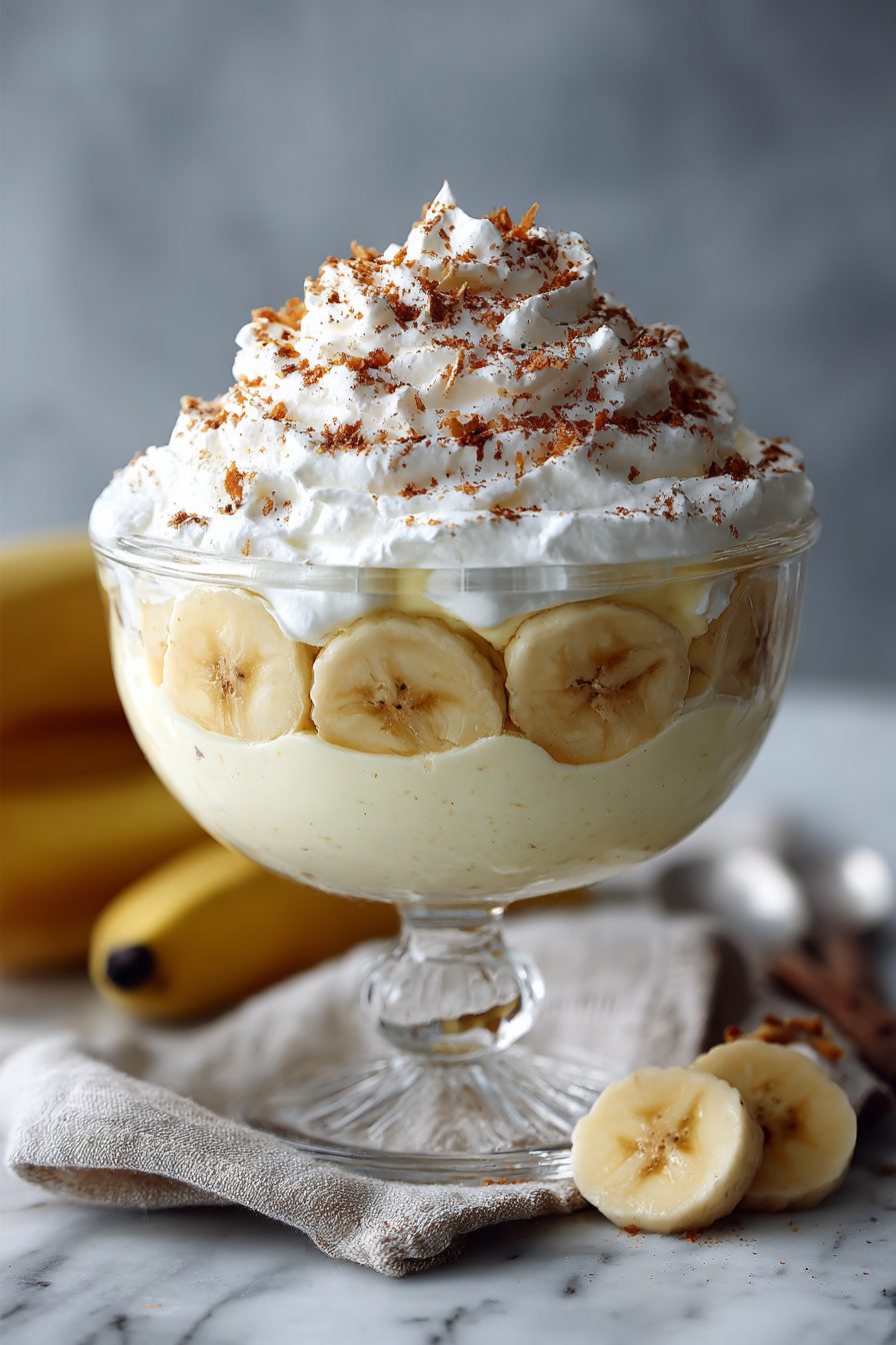 I’ve tried slicing the bananas super thin and chunky—chunky wins for more banana oomph. One day I swapped vanilla wafers for those buttery chessmen cookies and felt like I’d gamed the system. Also: once I forgot to thaw the whipped topping and, um, tried to beat it anyway… don’t be me. Let it thaw in the fridge and it’ll fold like a dream. If you’re nervous about browning bananas, I toss slices with a whisper of lemon juice, or even pineapple juice from a can—works like a charm and brings a little sunshine. And if the bowl looks a little soft after mixing, a quick chill fixes everything. The leftovers (if that’s a thing you experience) turn into a pudding-cake hybrid by day two. Not mad about it.