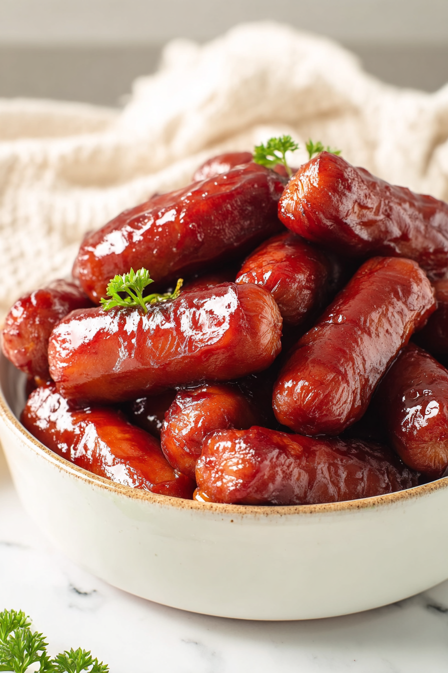 These cocktail smokies simmer in a sweet-tangy BBQ glaze for an effortless party appetizer. Minimal prep, huge crowd appeal.