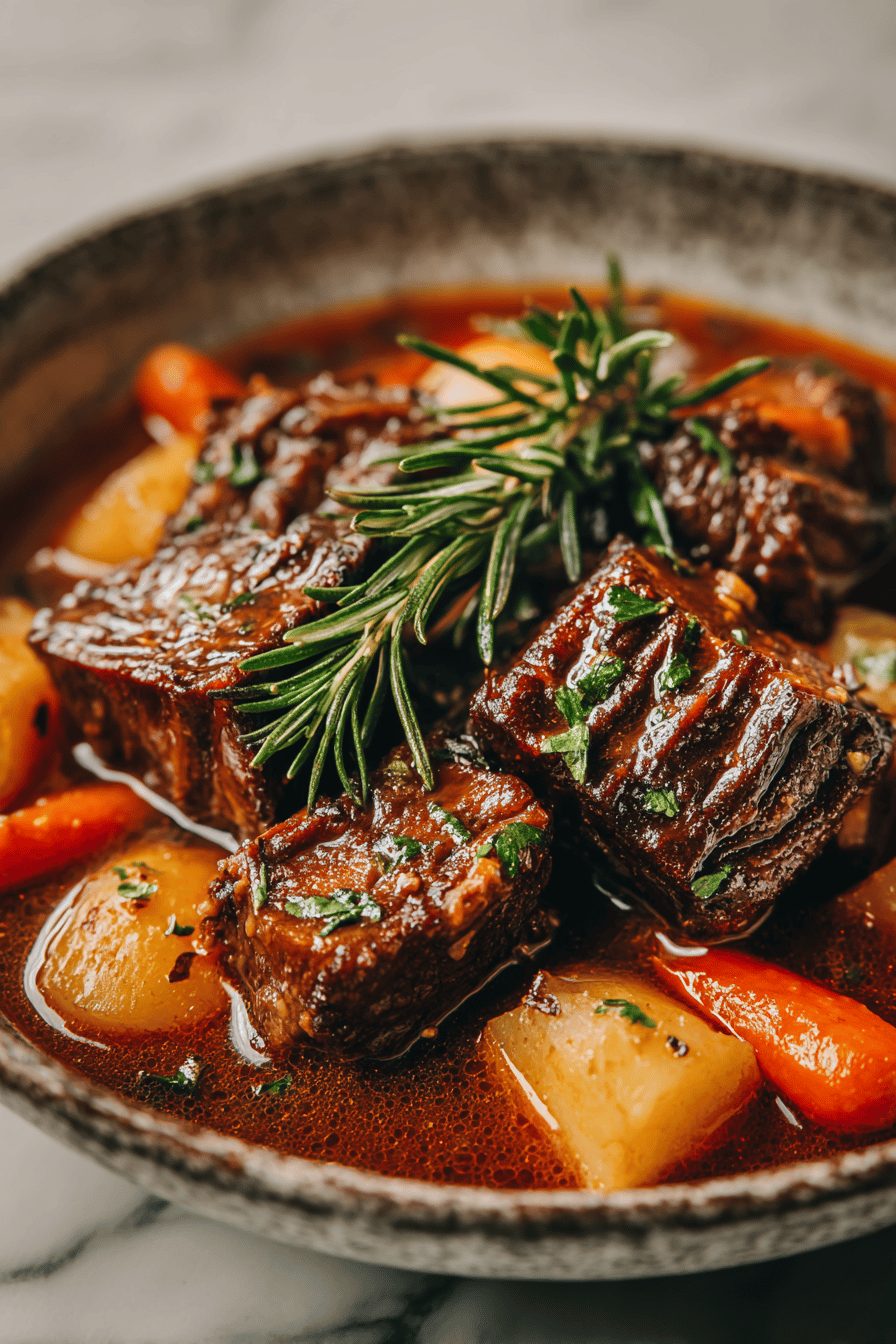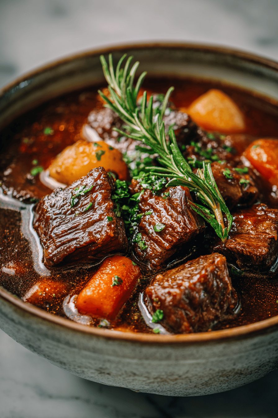 This stew is the kind of dish that hugs you from the inside — braised short ribs falling-apart tender, a beer-forward depth from a malty ale, and a glossy, soul-warming sauce that somehow makes vegetables taste like they were born for stew. It’s cozy, forgiving, and perfect for when you want dinner to feel like an actual event without having to babysit the pot all night.