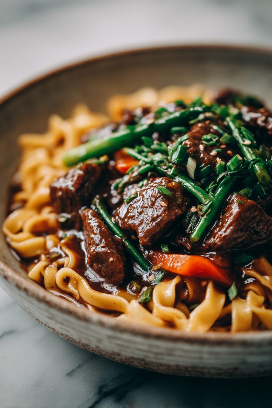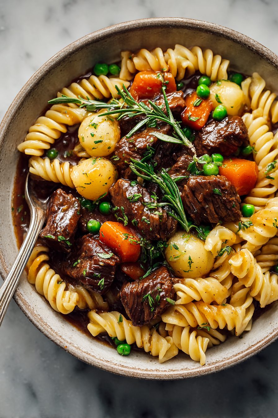 This is the kind of messy, comforting one-pan dinner that smells like childhood and makes you want to call your mom. Tender browned beef, soft noodles, a savory, slightly glossy sauce that hugs every strand — cozy, quick, and forgiving when life is messy (which, hi, is most nights here).