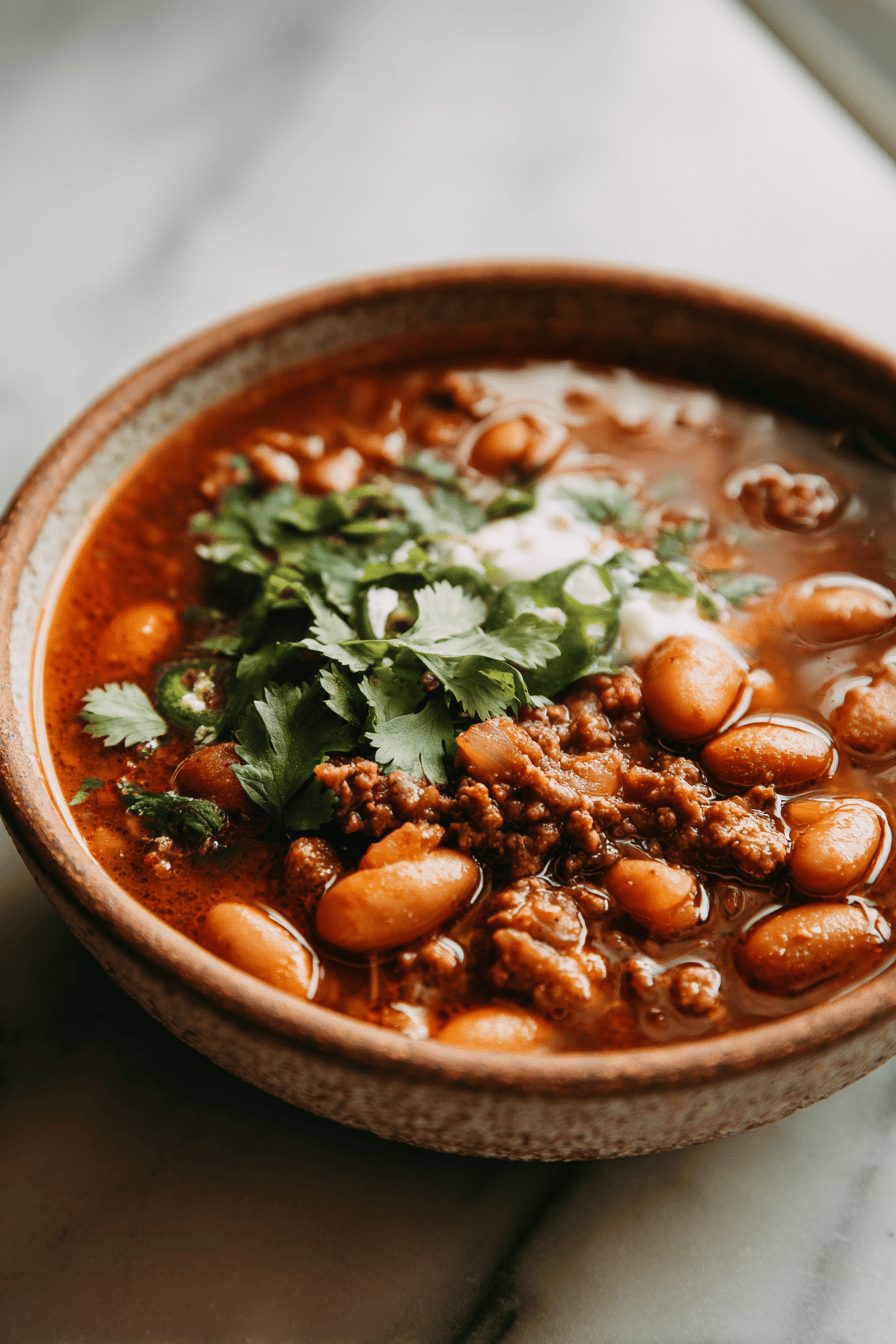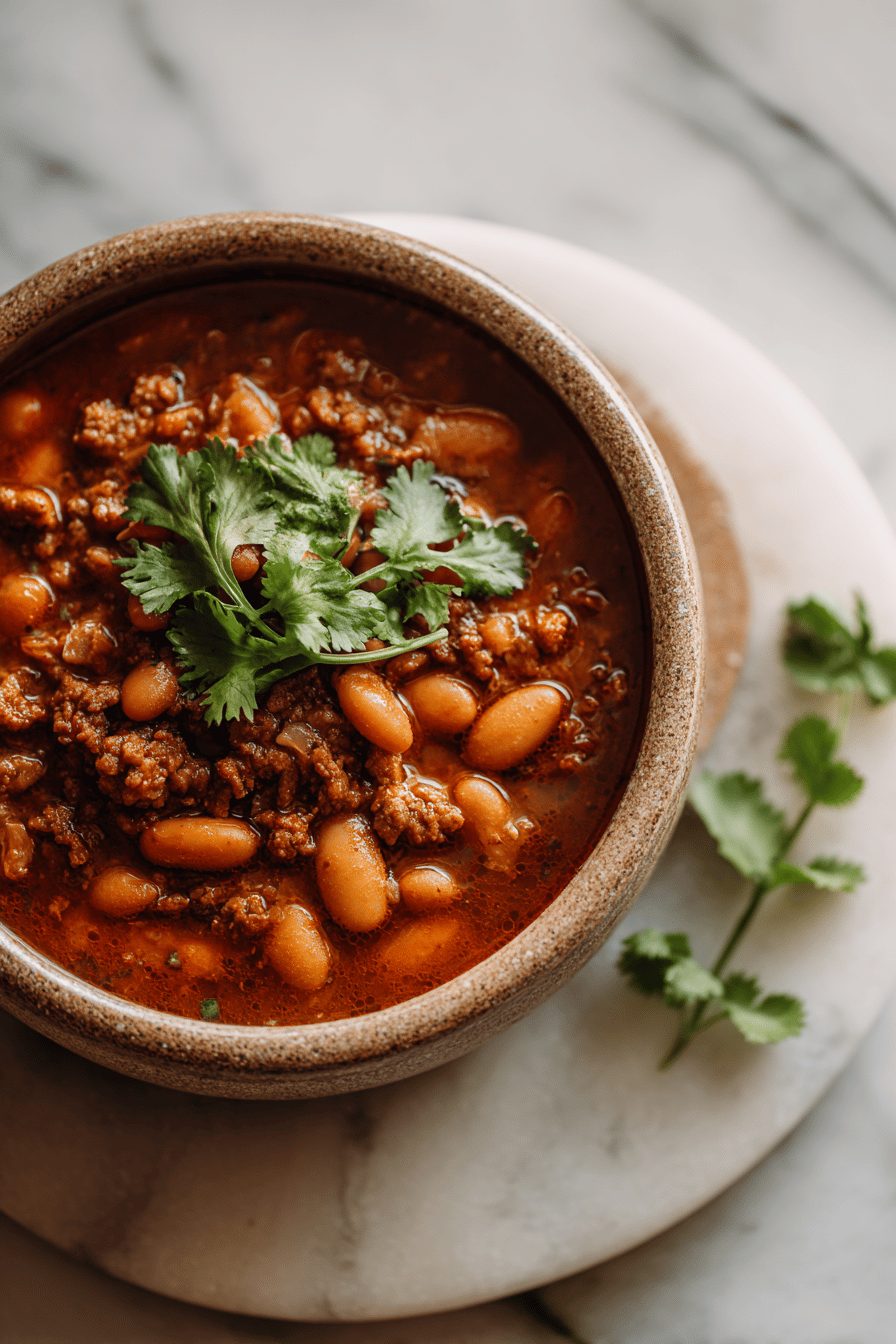 Use ground turkey for a lighter version, but add an extra tablespoon of oil to keep it from drying. Swap pinto beans for black beans for a deeper flavor, or skip beans entirely if you want a chunky meat chili. Add a square of dark chocolate or a teaspoon of cocoa powder for a subtle richness—don’t panic, it works. If you’re dairy-free, leave off the cheese and use avocado and chopped cilantro instead.