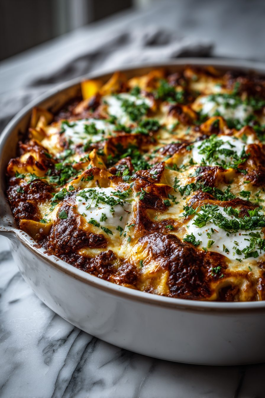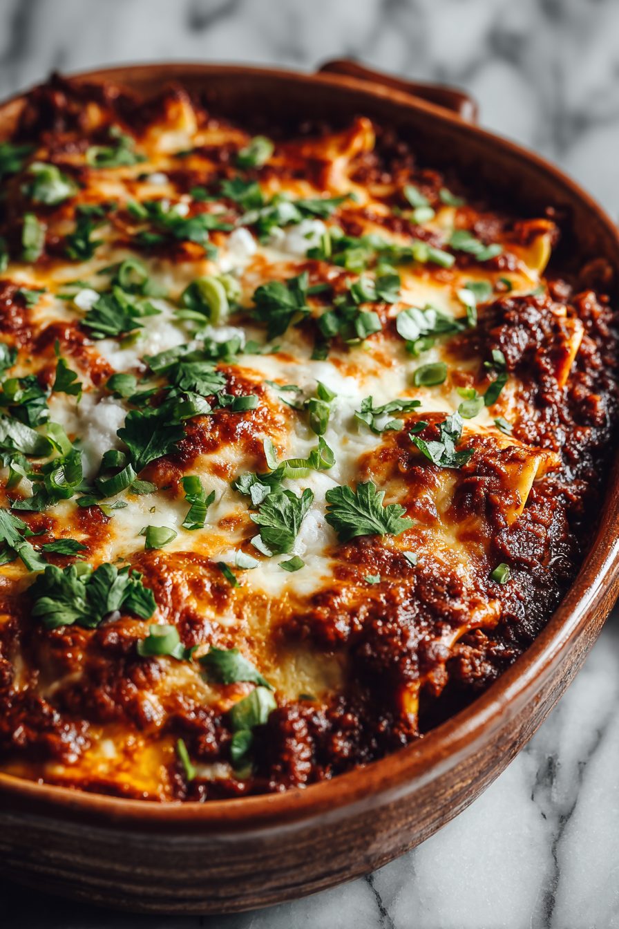 This dish is a goofy little mashup that actually works: cheesy beef-stuffed tortellini rolled in tortillas and smothered in enchilada sauce. It’s comfort food that feels a little fancy and a lot lazy — all the cozy pasta-and-beef vibes, but in a handheld, saucy format that makes people grin and lick their plates.