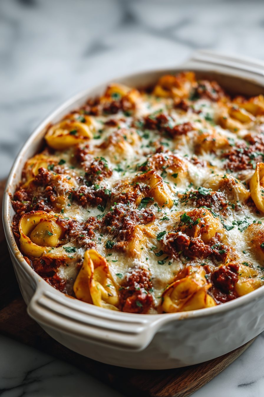 – Not draining super-greasy beef — I once baked a puddle of grease under the tortellini. Drain or blot the meat if it’s greasy.