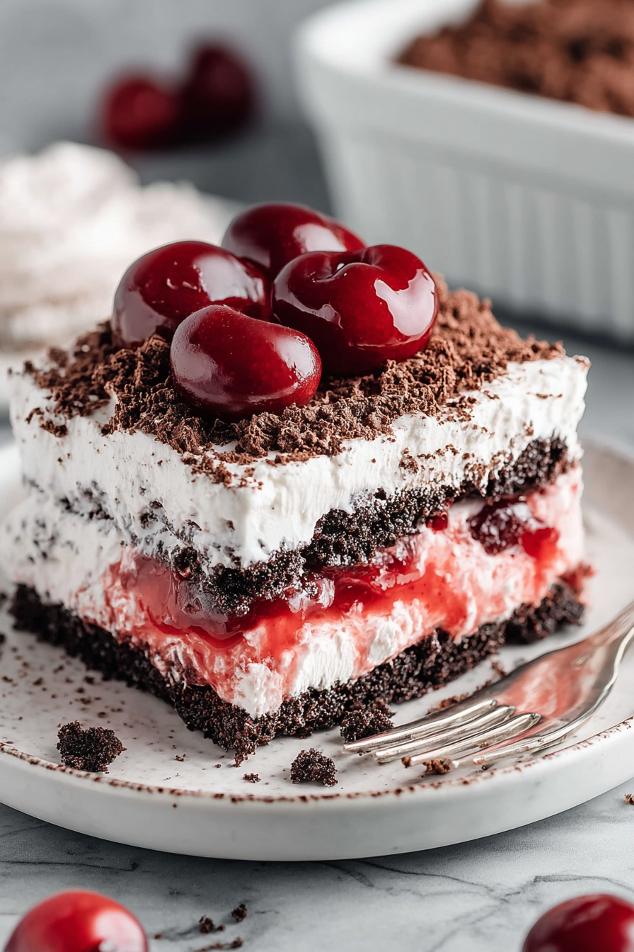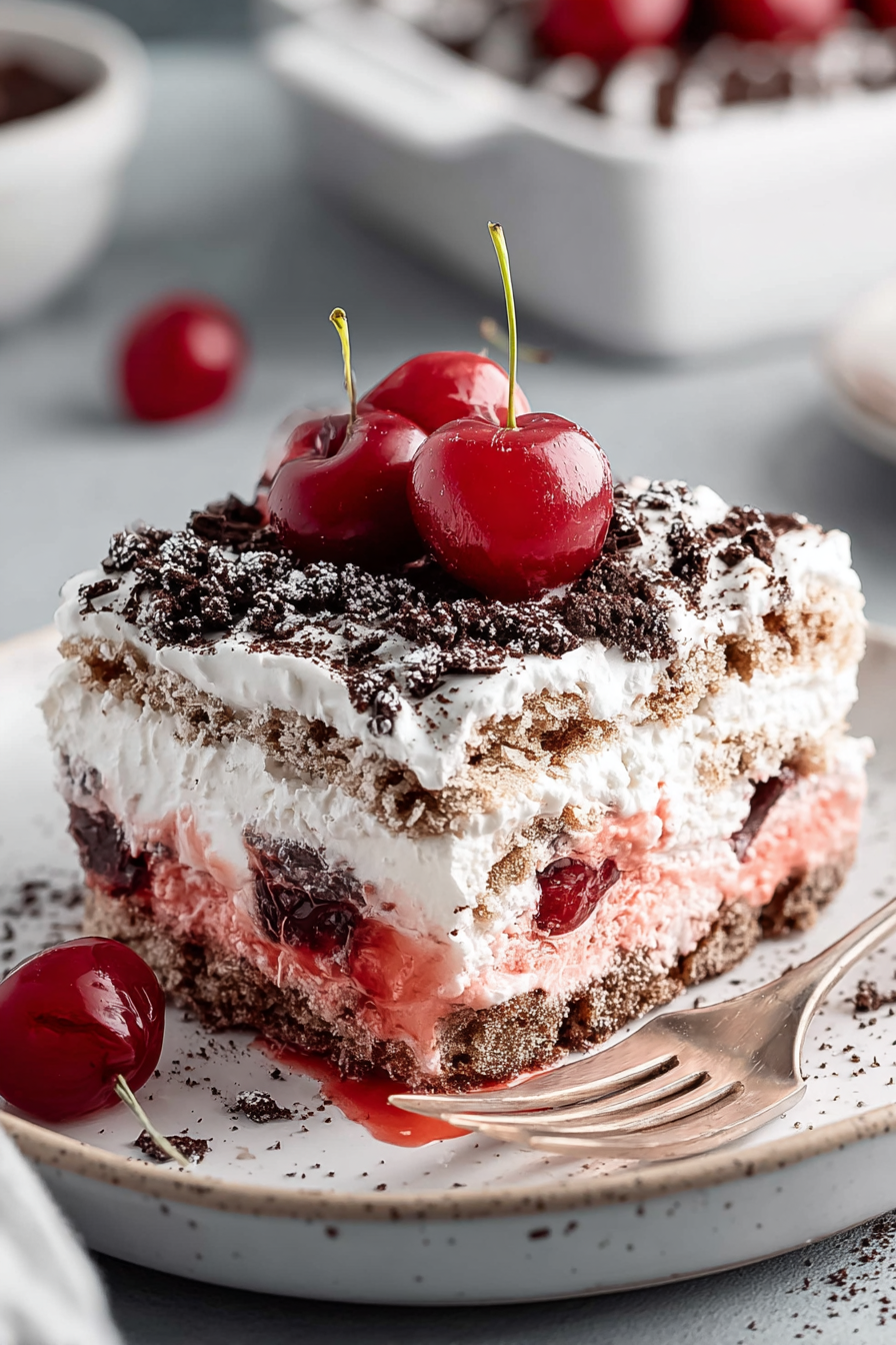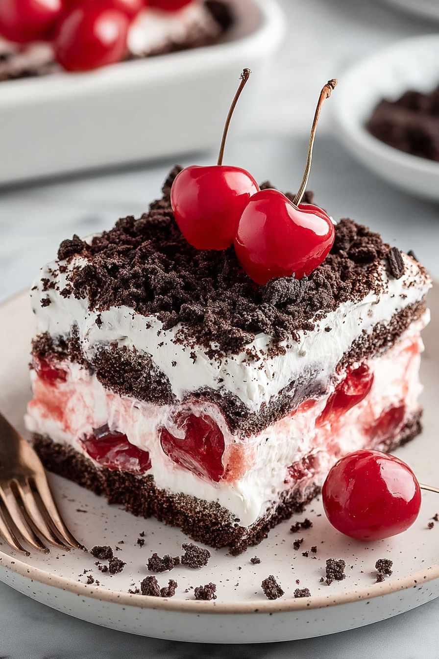 This is the kind of dessert that looks fancy but refuses to stress you out: layers of chocolate wafer cookies, boozy cherries (or jarred cherry pie filling if you’re tired), and pillowy whipped cream that sets into a sliceable, slightly messy, totally addictive icebox cake. It’s Black Forest vibes without the oven meltdown — just assembly, chill time, and a lot of satisfied spoon-licking.