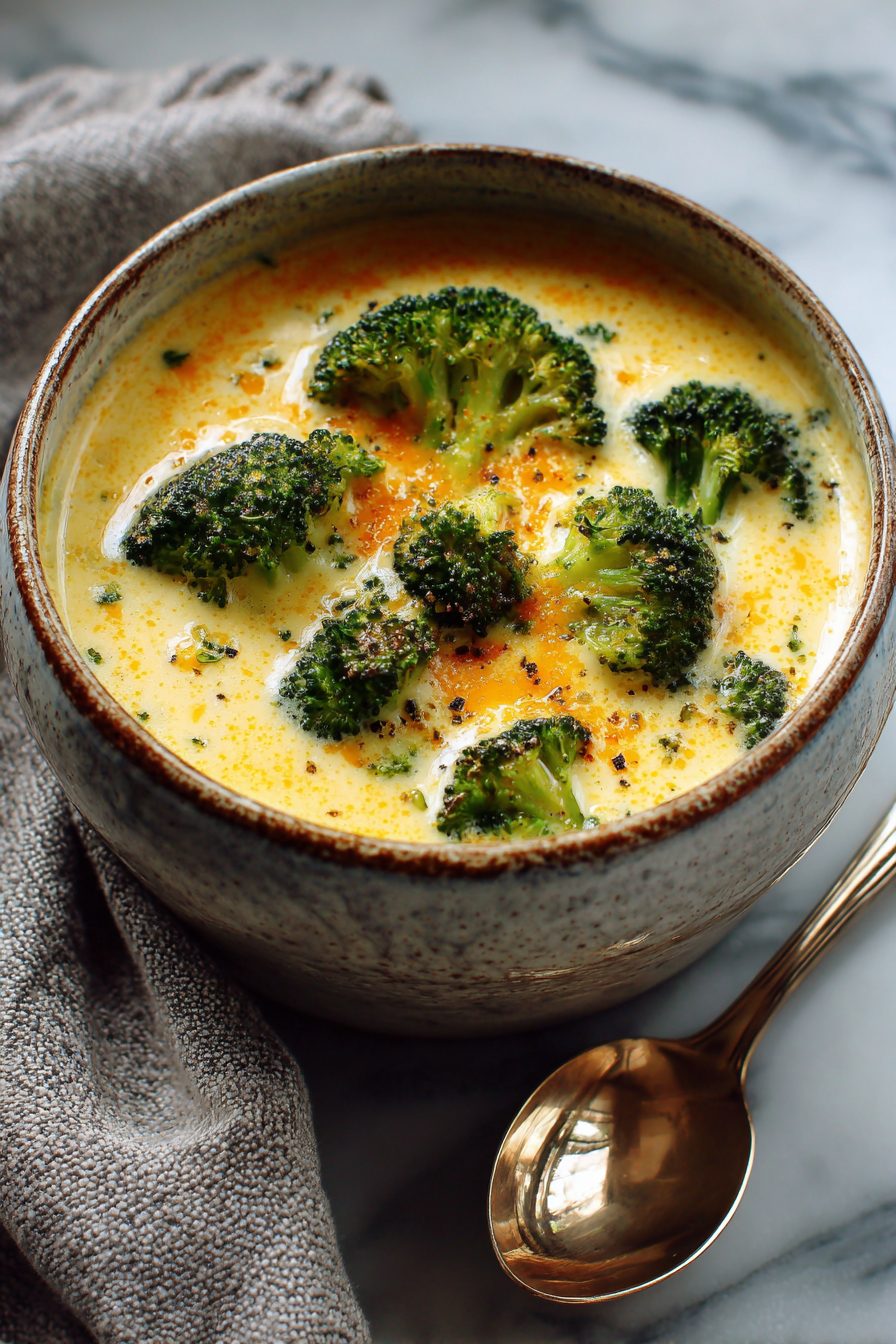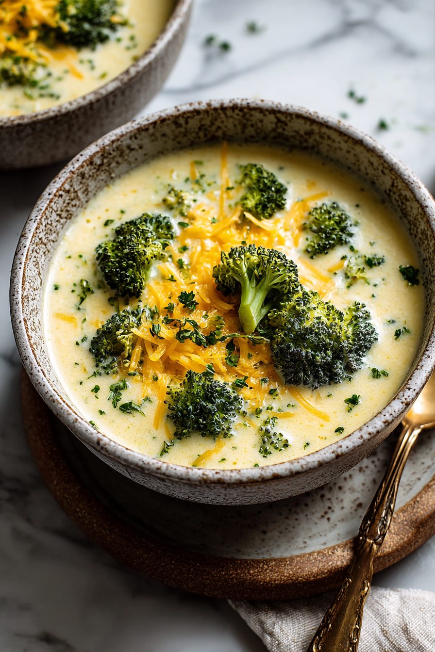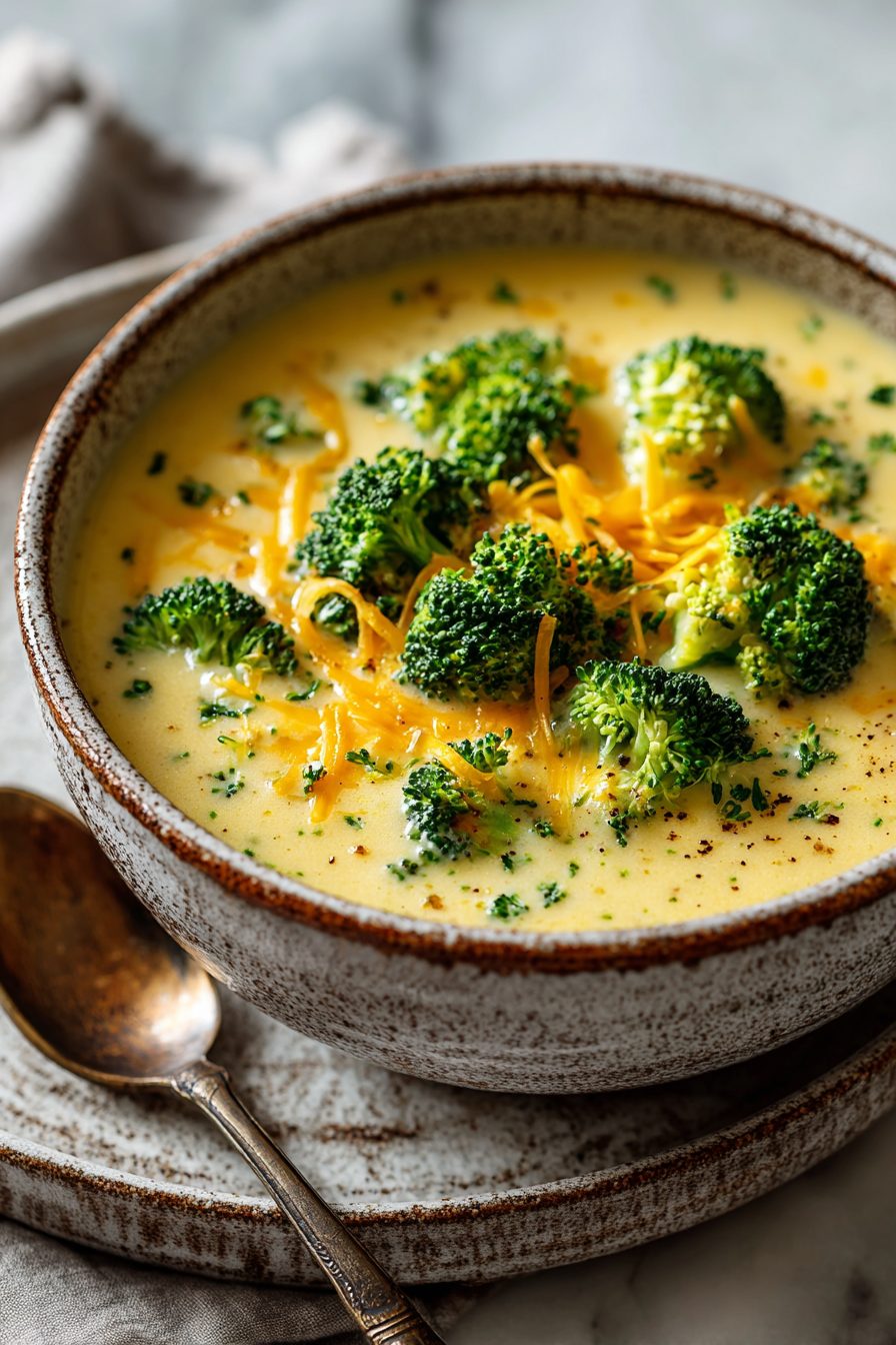 I make this soup when I want something that feels like a warm hug and also like I have my life together — which is rarely at the same time. It’s creamy, cheesy, and comfy: broccoli and potato simmered until tender, blended a bit (or not), and finished with sharp cheddar that melts into everything. It’s the kind of bowl that soaks up winter evenings, picky-kid detours, and leftover roast chicken with equal enthusiasm.