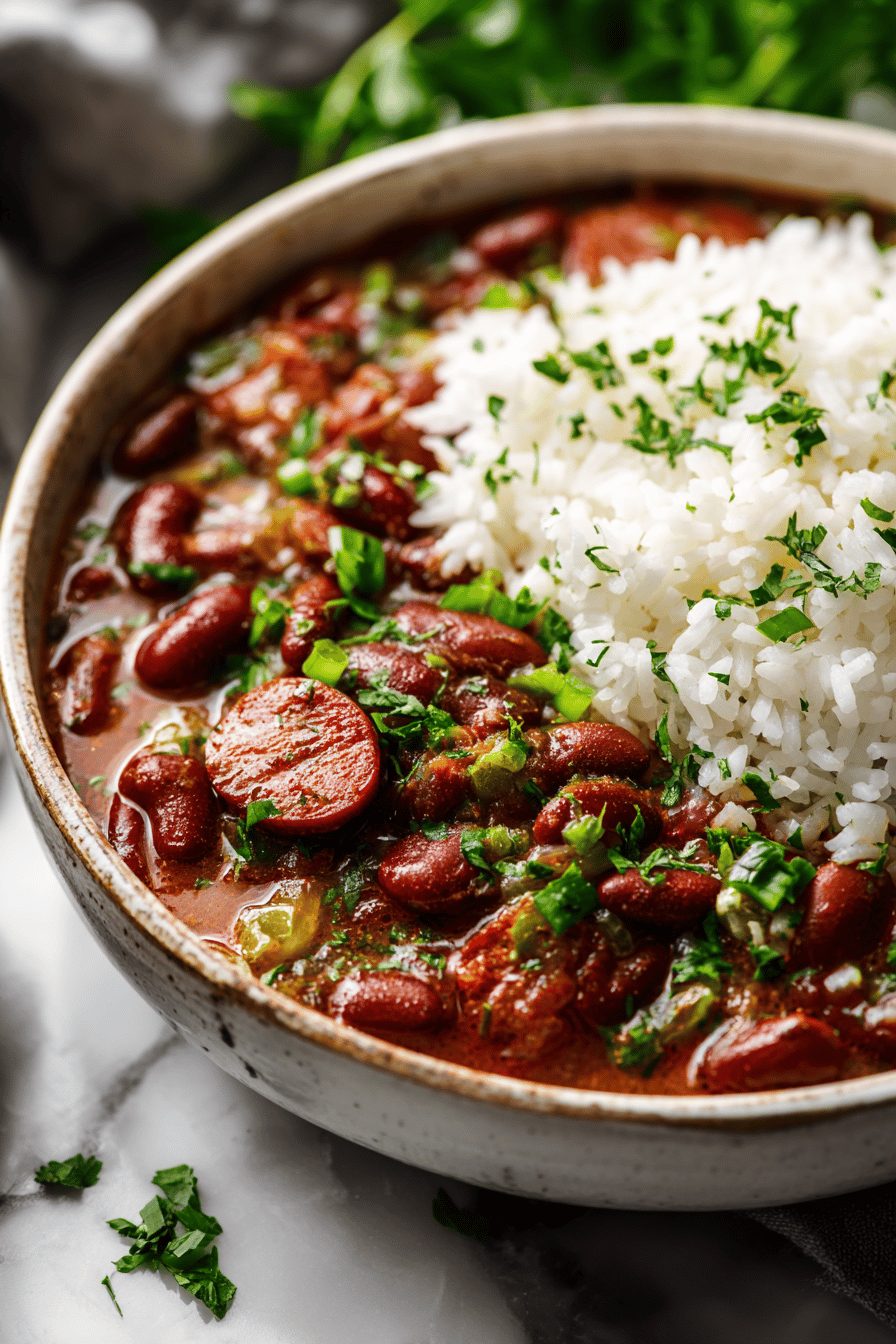 – Beans: red beans are classic, but kidney or pinto can sub in a pinch — texture will vary.