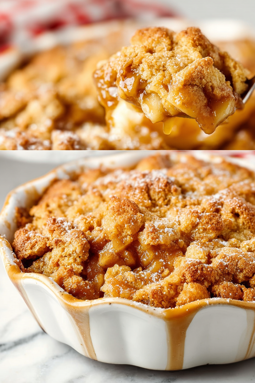 – Warm, sticky, slightly tangy apples against a crunchy, buttery top — instant crowd-pleaser.