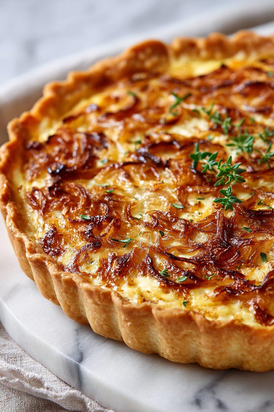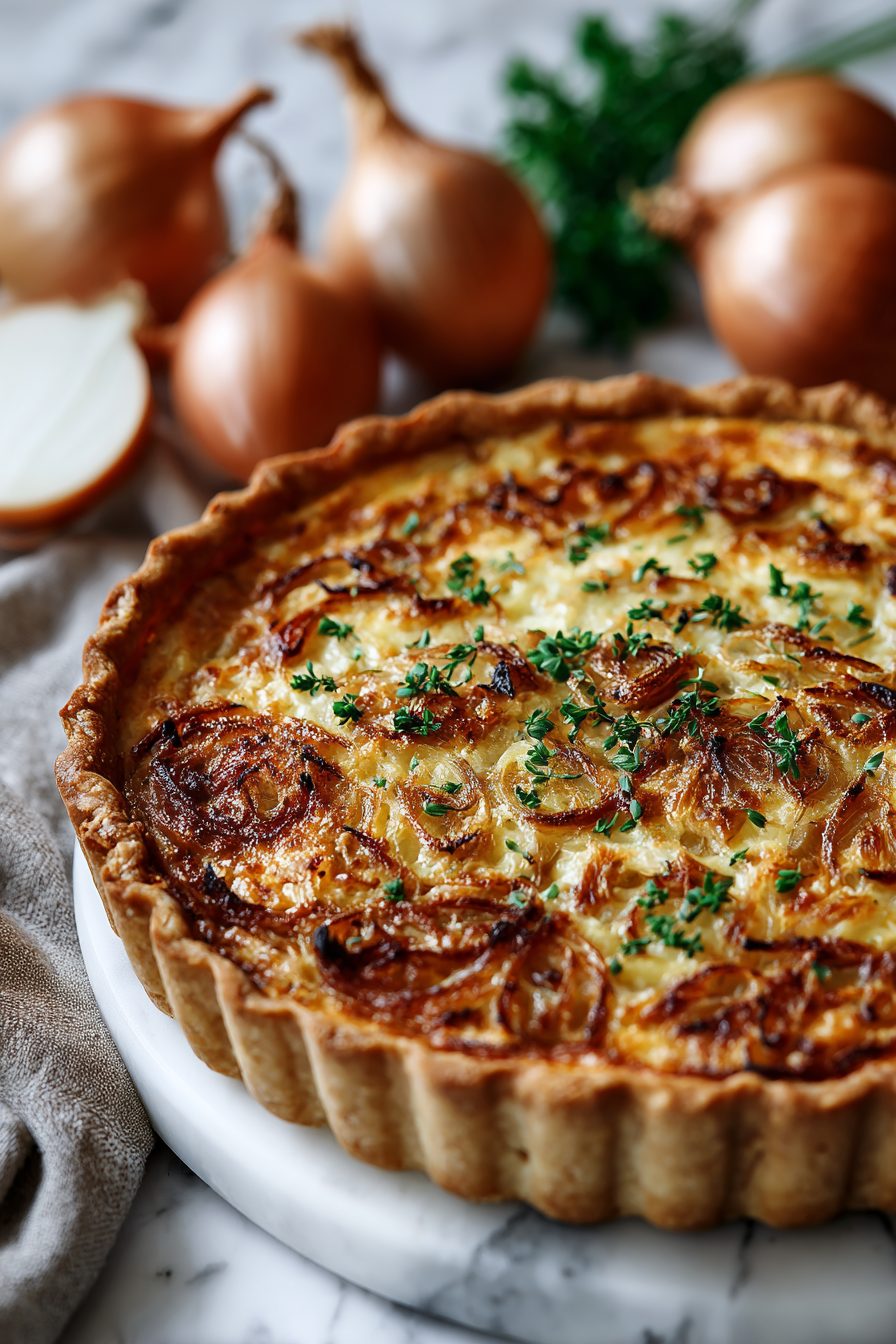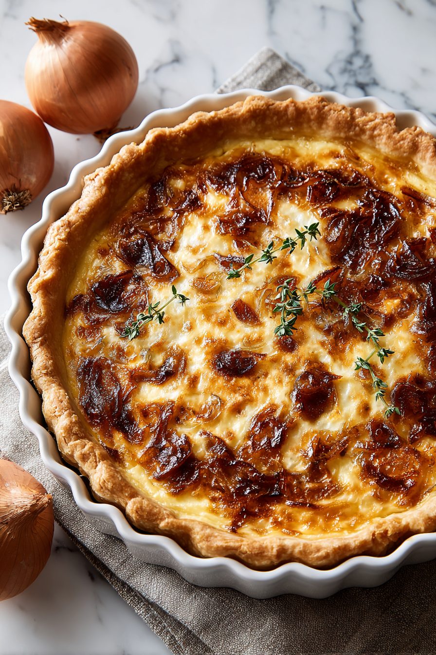– Sweet, slow-cooked onions meet a silky egg custard — it’s cozy but not heavy.
