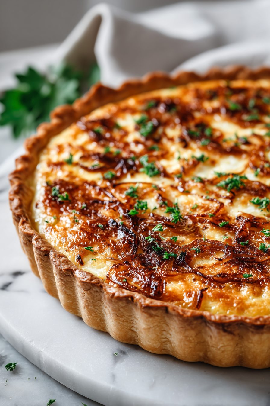– Sweet, slow-cooked onions meet a silky egg custard — it’s cozy but not heavy.