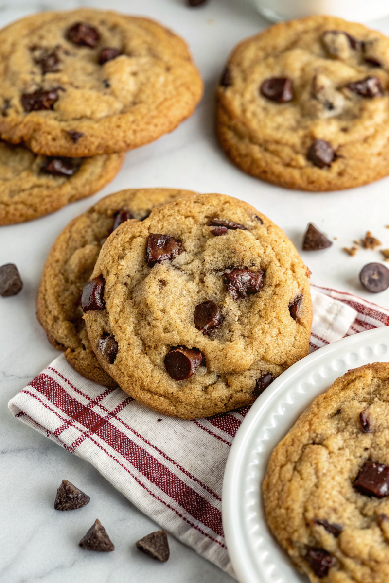 I am not joking when I say these cookies ruined every other chocolate chip cookie for me — in the best way. They’re chewy, deeply caramel-flavored thanks to browned butter, and studded with melty pockets of chocolate. If you like your cookies with a little chew, a glossy crackly top, and a hint of toasty nuttiness, you’ll get why I keep a stack of these on the counter like some kind of delicious security blanket.