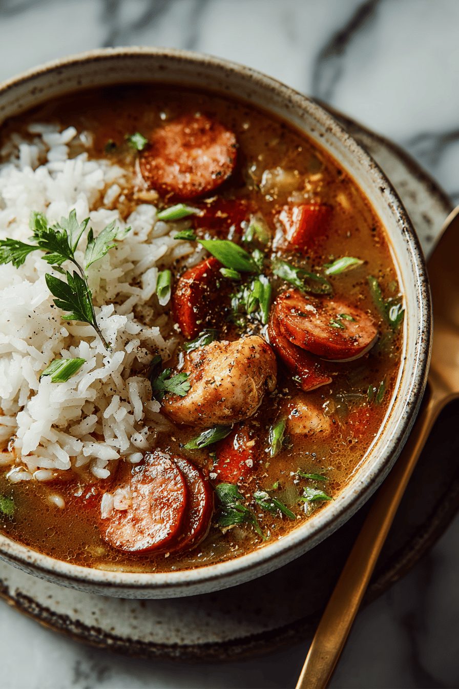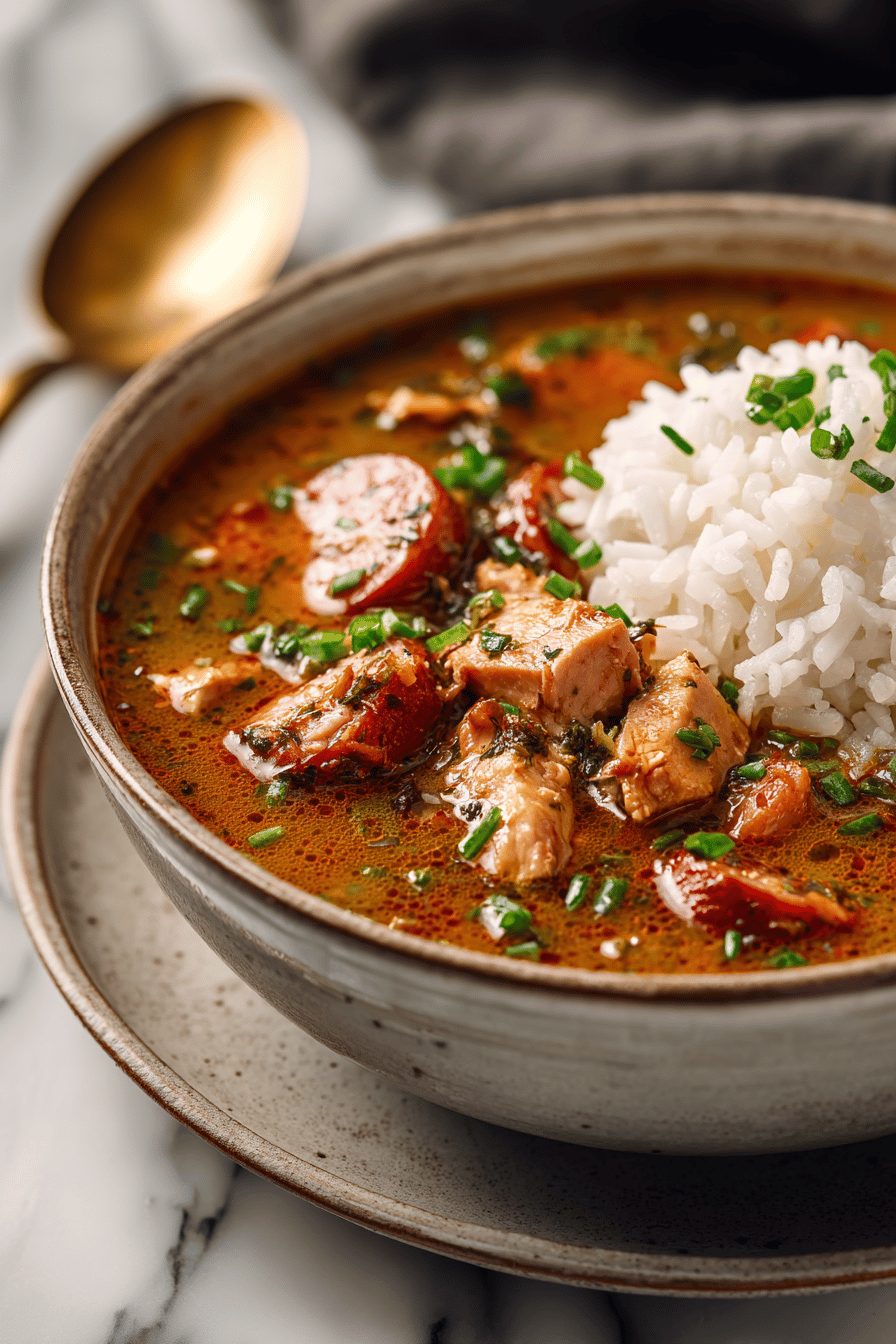 My husband will eat this until the bowl is scraped clean and then ask for “just a little more rice” like he’s bargaining. The kids call it “the soup with the dark sauce” and I call it my favorite messy success. I learned to make it the winter after we moved into our house — experiments in roux and the patience to stir until my forearm complained. Now it’s our go-to when I need comfort food that’s actually quick-ish and hides extra vegetables in plain sight.