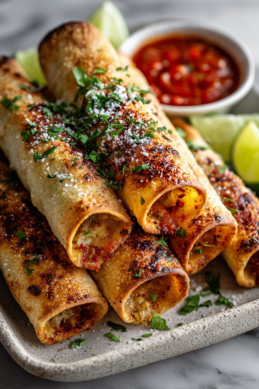 – Overstuffing the tortilla: I once jammed so much filling the tortilla split in the oven — less is more. Aim for a thin log of filling so they roll tight and crisp.