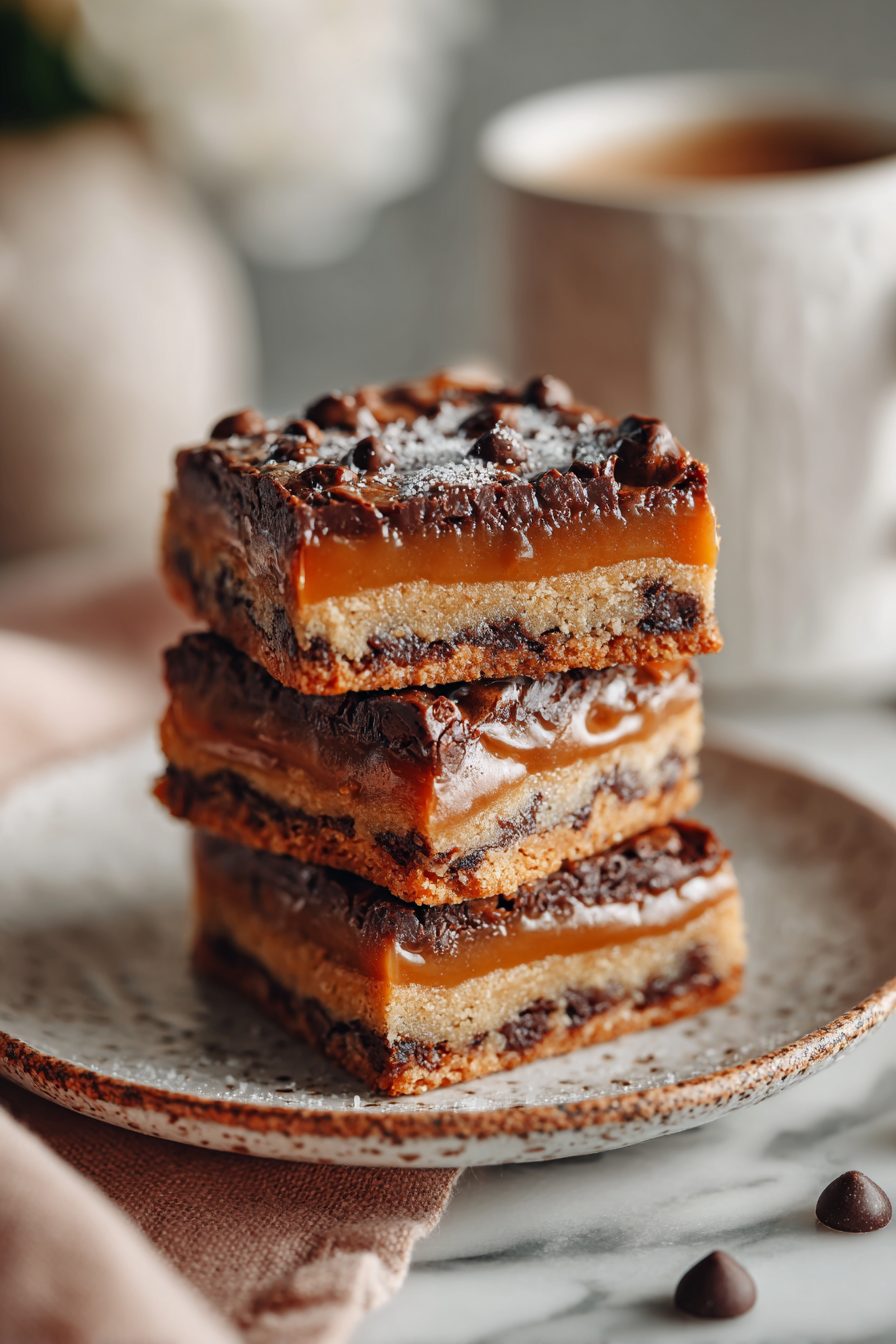 These bars are the kind of sticky, slightly imperfect dessert that makes people stop mid-sentence and ask for a second piece. Think a chewy shortbread-ish base, a gooey layer of caramel, and a hefty sprinkle of chocolate chips on top — baked until edges are golden and the middle still sags a little when you poke it. They’re deceptively easy, comfort-food-level rich, and perfect for when you want something homemade but don’t have the patience for fussy pastry.