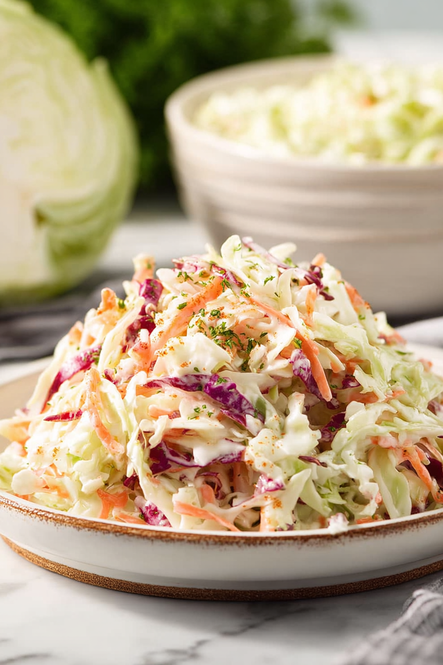 – Dairy: If using yogurt or sour cream instead of mayo, choose full-fat for creaminess and a tangier flavor that stands up to cabbage.