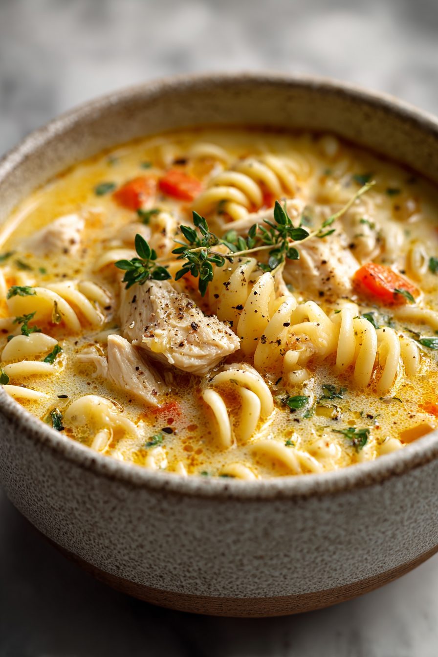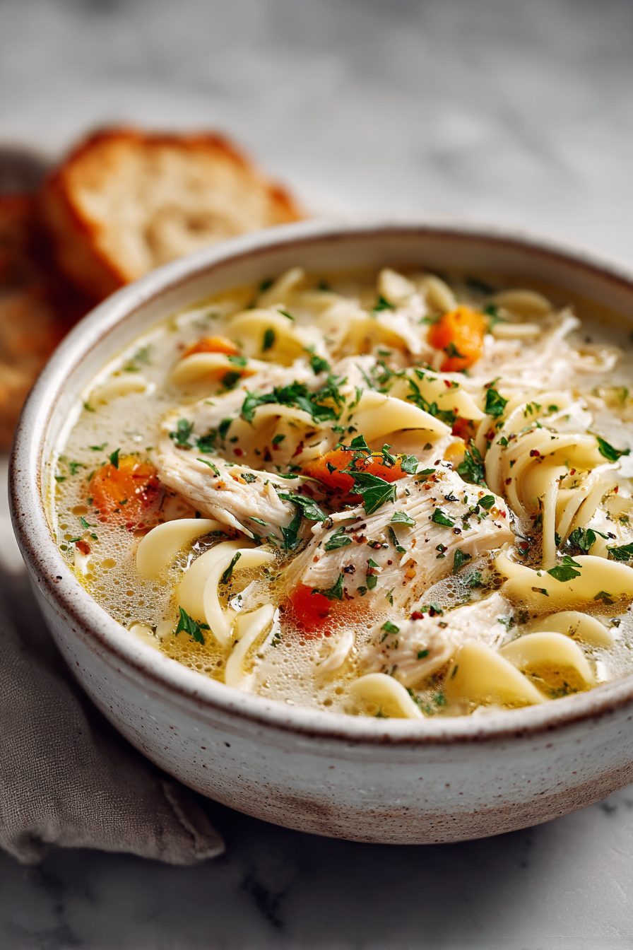 This is the coziest bowl of chicken noodle soup but with that “crack chicken” twist—creamy, ranchy, cheddar-y, and yes, there’s bacon involved. It’s the kind of soup that makes the house smell like you tried really hard even when you absolutely didn’t. Soft egg noodles, tender chicken, a little ranch magic, and melty cream cheese pull the whole thing into a hug-in-a-bowl situation. If your week has been a clown car, this pot will make you feel like you’ve got it together again.