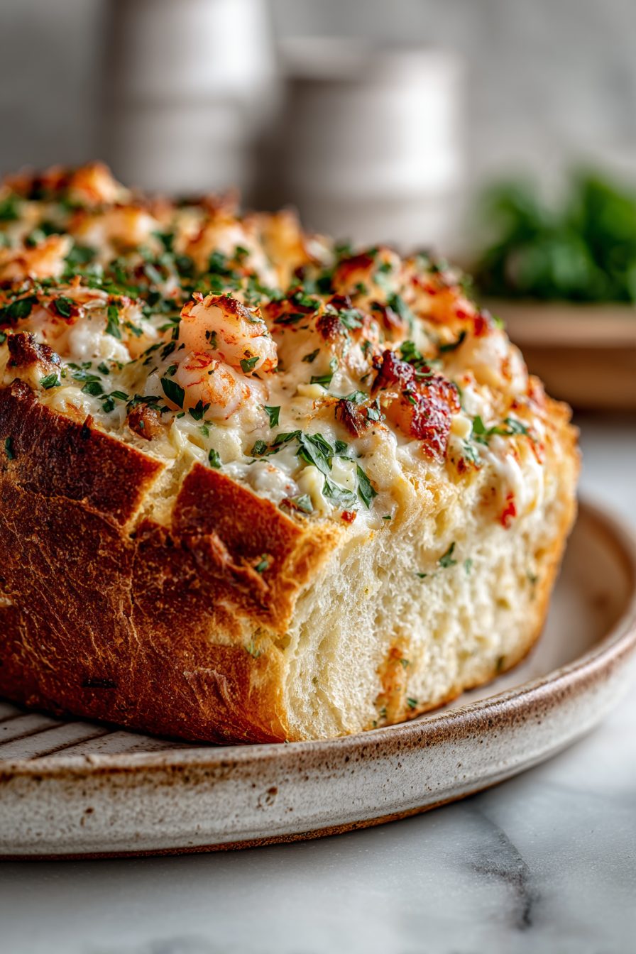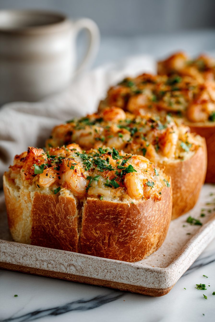 – Cheesy, seafoody, and easy to assemble — like a cozy dip that happens to wear bread as a hat.