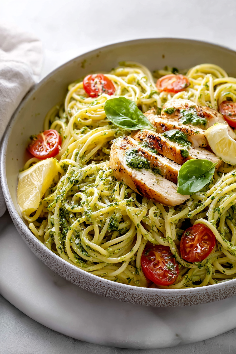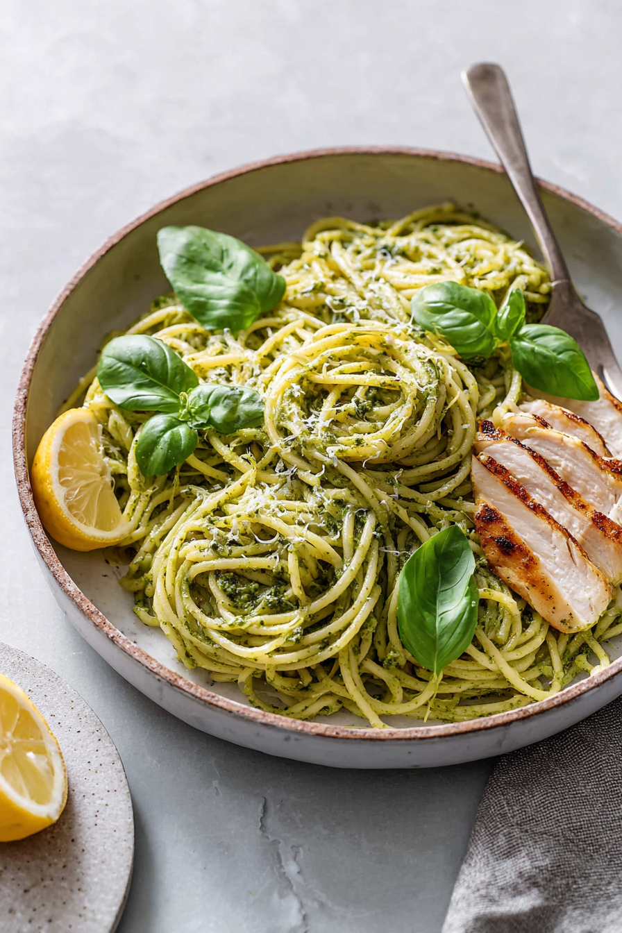 Sometimes I forget to save pasta water and I’ve been known to scoop it out with a coffee mug like a gremlin. It works. That starchy magic loosens the sauce and makes it glossy without drowning it. Also, don’t boil the pesto. Warm it. Coax it. If you blast it, it turns dark and a little sad. I’ve done it and yes, we still ate it, but the basil deserved better. Last week I swapped in a little Greek yogurt when I ran out of cream—tangy, lighter, still dreamy. If you’re using rotisserie chicken, toss it in at the end just to heat through so it stays tender. And if you want bonus points, toast your nuts (pine nuts or walnuts) while the pasta cooks—the smell alone feels like you live in a nicer kitchen than you do.