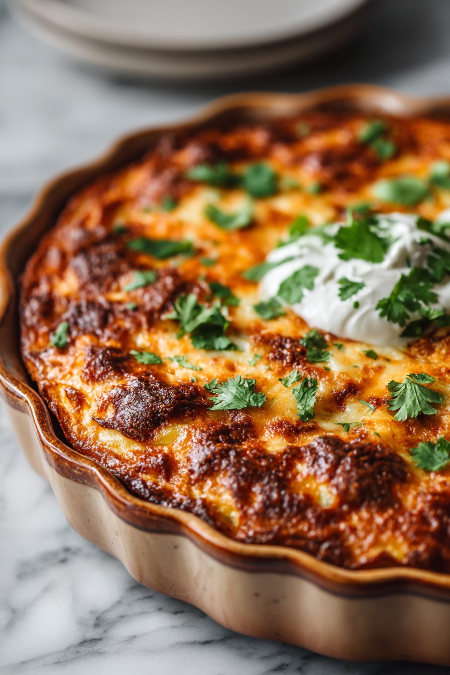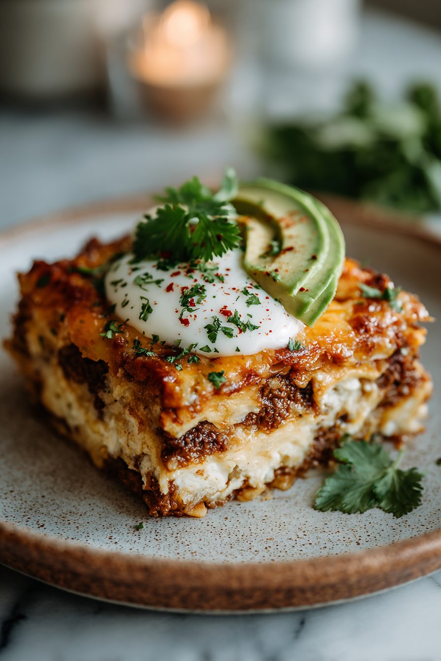 This casserole is basically a lazy, gorgeous stack of slightly crinkled tortillas soaked in a cozy, cheesy, tomato-meets-spice filling — the kind of thing that shows up at our table when I’m out of spoons but still want to impress. It bakes up bubbly on top, soft and slightly saucy in the middle, and it’s one of those meals that tastes like comfort and also like I did something clever with leftovers.