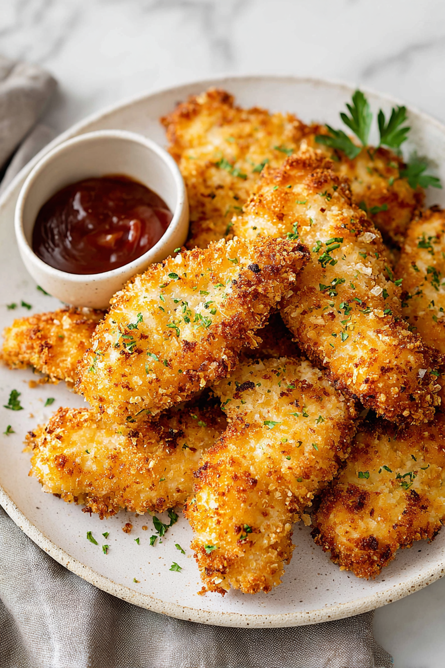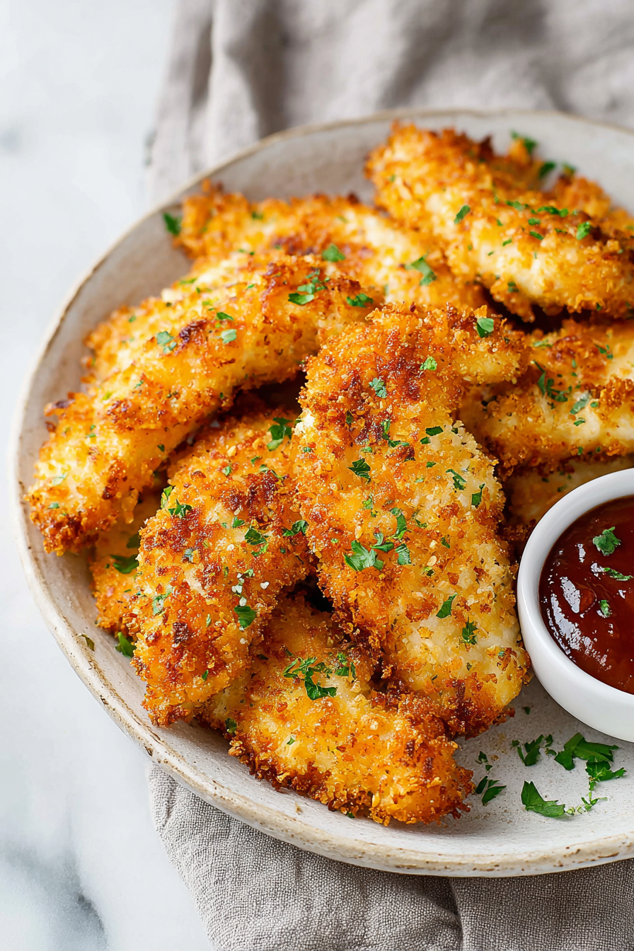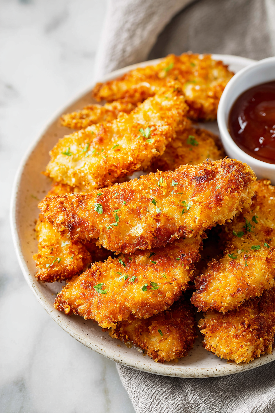 My little family goes feral for these. My husband prowls around the kitchen pretending he’s “checking the first batch” and somehow two tenders disappear every time. My kid dips them into ketchup like it’s a sport. I made a double batch once for a Saturday game night and, not to be dramatic, but they were gone before halftime. The next morning, I ate a cold leftover tender straight from the fridge while packing lunches—no regrets, 10/10 would do again.
