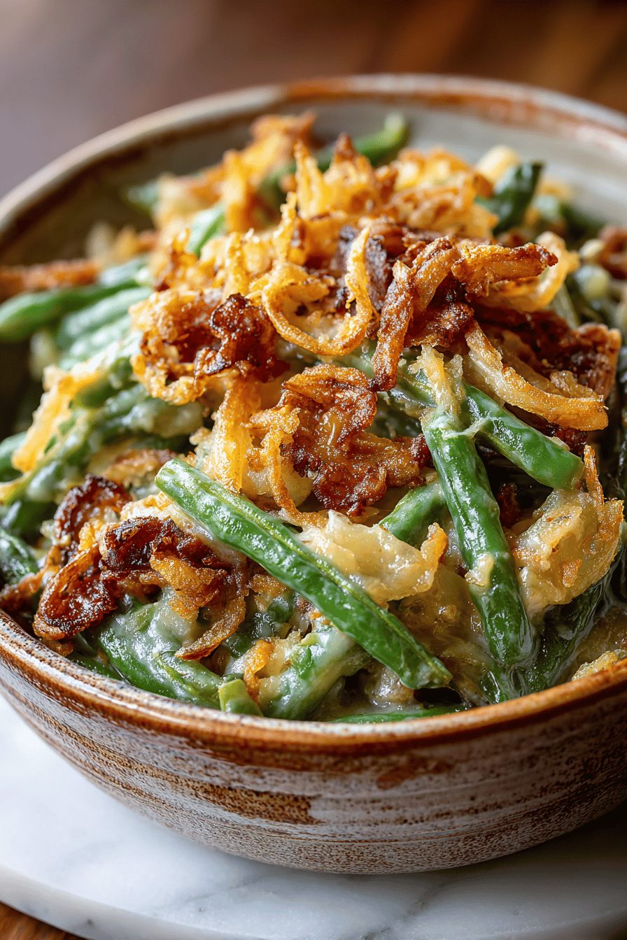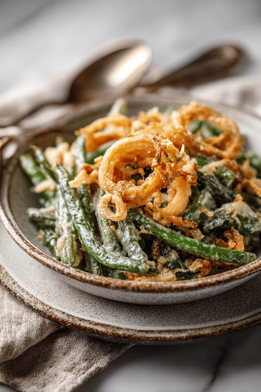 This casserole is the cozy, slightly nostalgic dish that lives at the intersection of lazy-weeknight convenience and holiday table credibility. It’s green beans cooked low and slow in the crock pot with creamy mushroom-y sauce, topped with crunchy fried onions — but the whole thing feels lighter and less frantic because your slow cooker does the heavy lifting. If you want a fuss-free side that’s somehow comforting and not a guilt trip, this is it.