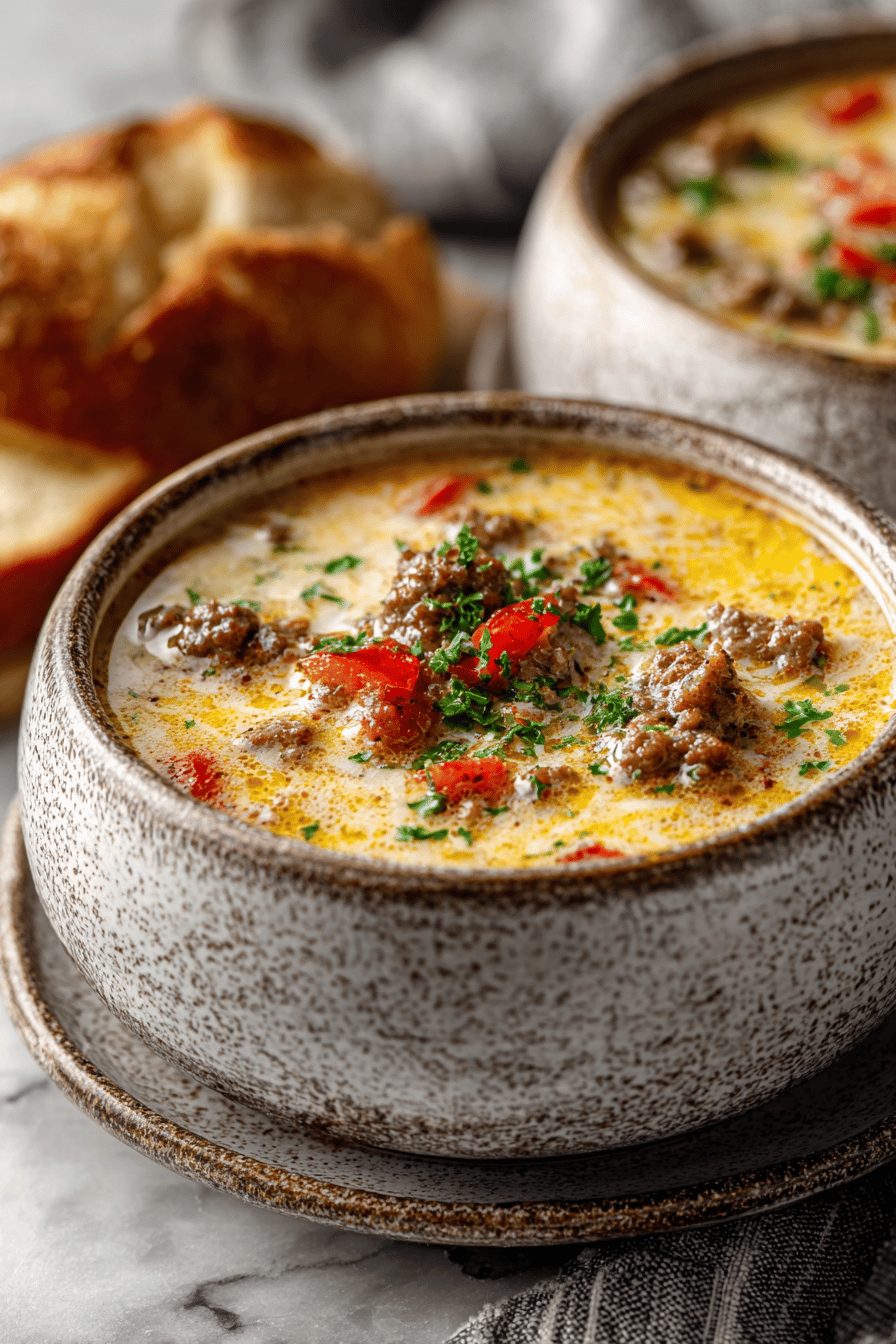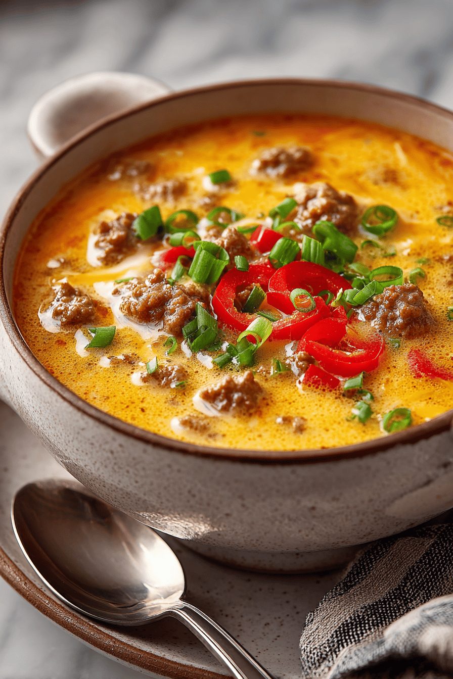 This soup is basically a hug in a bowl disguised as a weeknight miracle: cheeseburger flavors—juicy beef, tangy tomato, melty cheddar—all cozying up with potatoes and a creamy broth in your slow cooker. It’s comfort-food lazy: dump-and-simmer vibes but with actual depth if you brown the meat first and finish with sharp cheese. Try it because it tastes like a cheeseburger without the bun catastrophe, and it makes the house smell like dinner happened even if you forgot to plan.